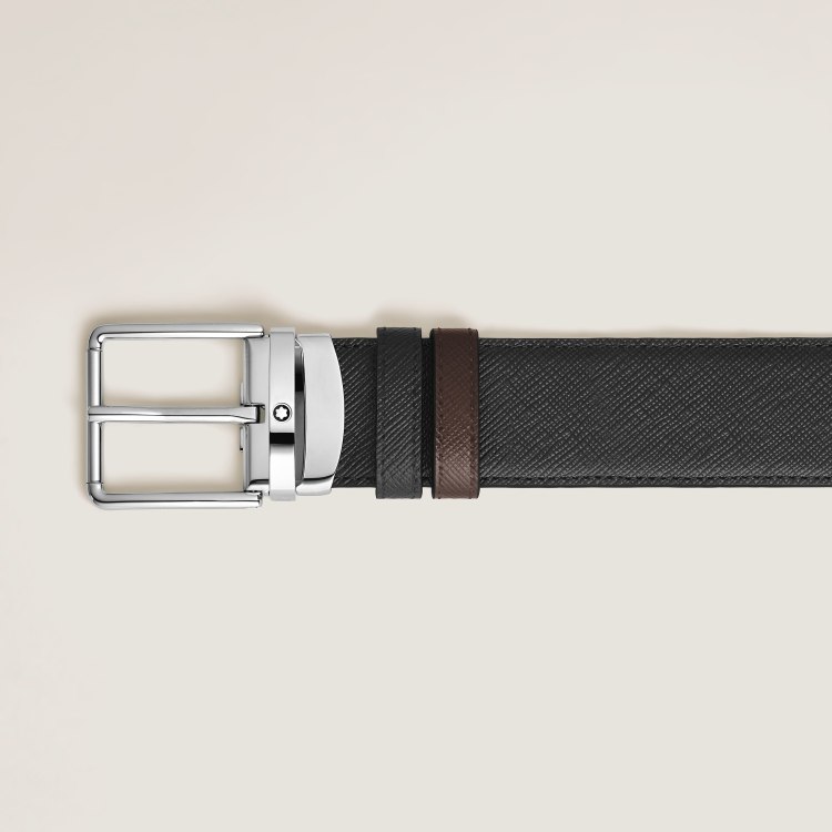 这款35毫米双面腰带,搭配百搭的针扣,一面采用黑色匠心系列皮革制成,呈现精致且富有纹理的饰面:另一面采用浓郁乌木色调,带扣呈现流畅简约的矩形轮廓,边缘清晰流畅,饰有低调的六角白星品牌标识,适合各种场合。