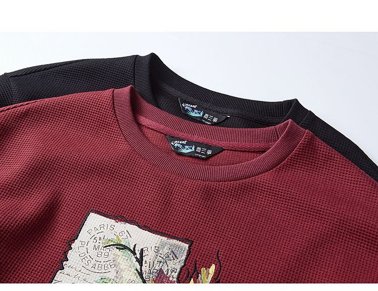 两三事 液态绮香 2025夏季新款复古印花荷叶边半高领短袖t恤女