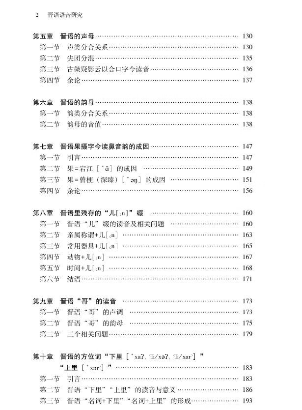 北方的汉语方言里,晋语面貌独特,其存古与创新并存,再加上强势的官话方言的影响,呈现出纷繁复杂的面貌,一直是学术界关注的热点与重点。本书内容包括三个方面:第一,《晋语的分区》介绍晋语的分布区域,分片及各片的主要特点。第二,重要语音特征的总体性研究。《晋语的文白异读》详细描写了声母、韵母文白异读的类型;《晋语韵母一二等的区别》详细描写了韵母分一二等的类型,和演变速度的快慢等。晋语丰富的白读系统和韵母分一二等,属于存古特征,在北方方言里尤为突出。《晋语的声母》《晋语的韵母》简要介绍晋语声母、韵母的主要特点。《晋语的声调》研究调类的分合关系及合流方向,平声、阴平上、入声调的先分后合,属于晋语的自我创新。第三,个案研究。根据特殊读音,从演变与层次分析其原因,也就是考本字。