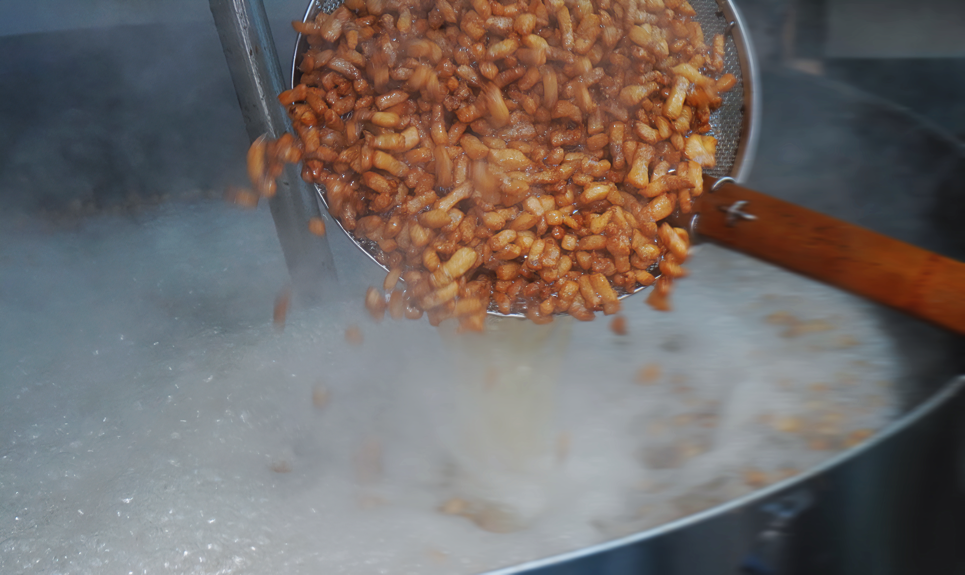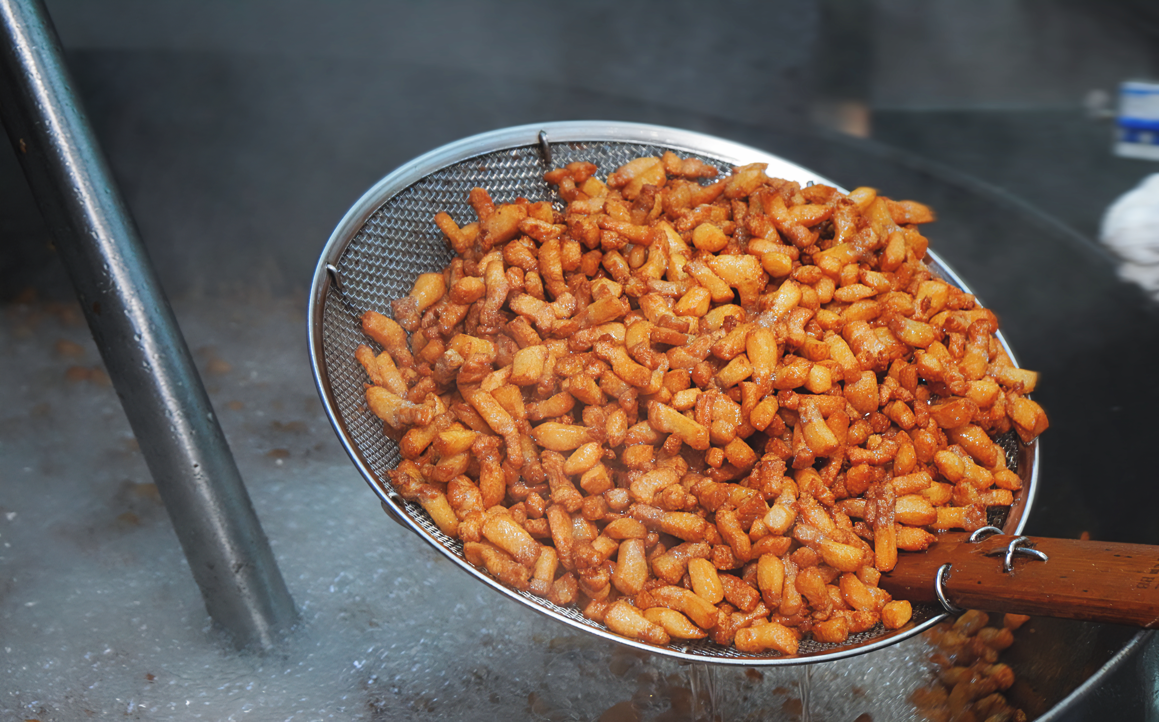 成千上万个肉丁在油锅中迅速演绎了一场又一场的绝美舞蹈,呈现了迷人的舞姿。