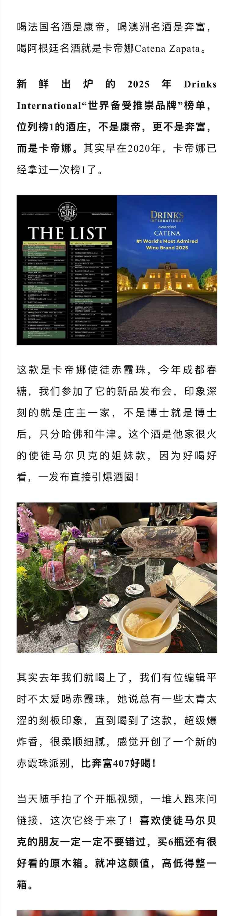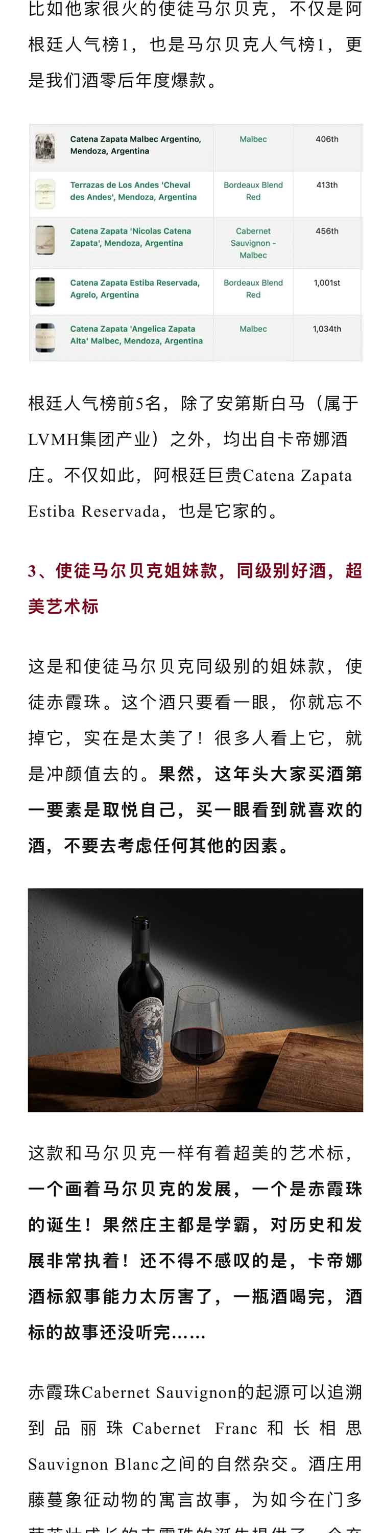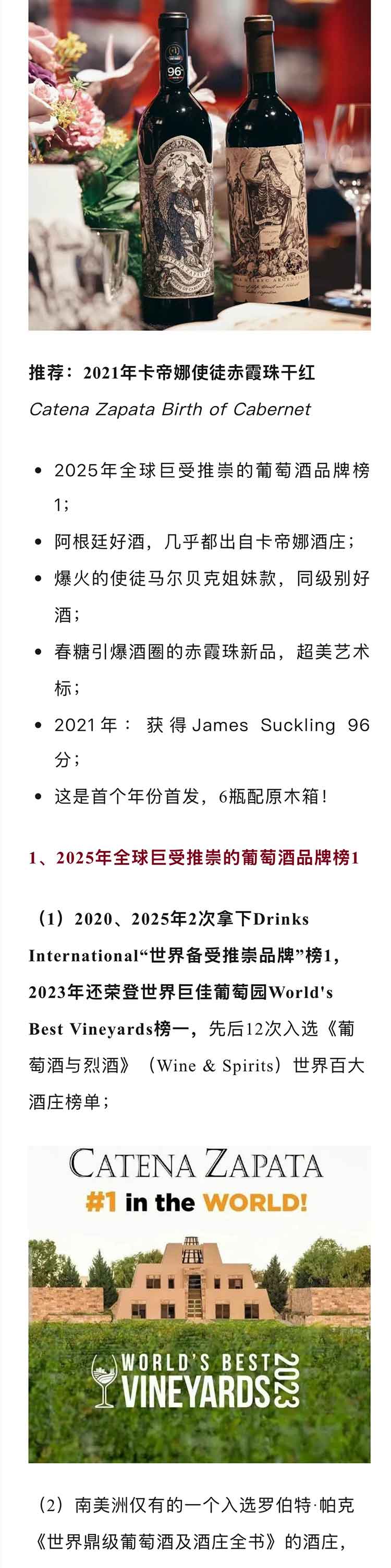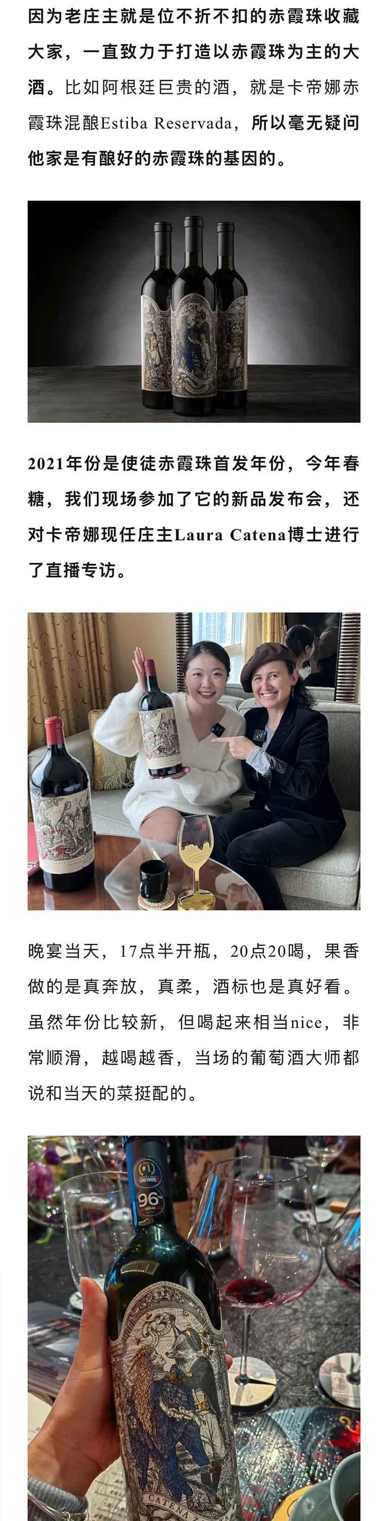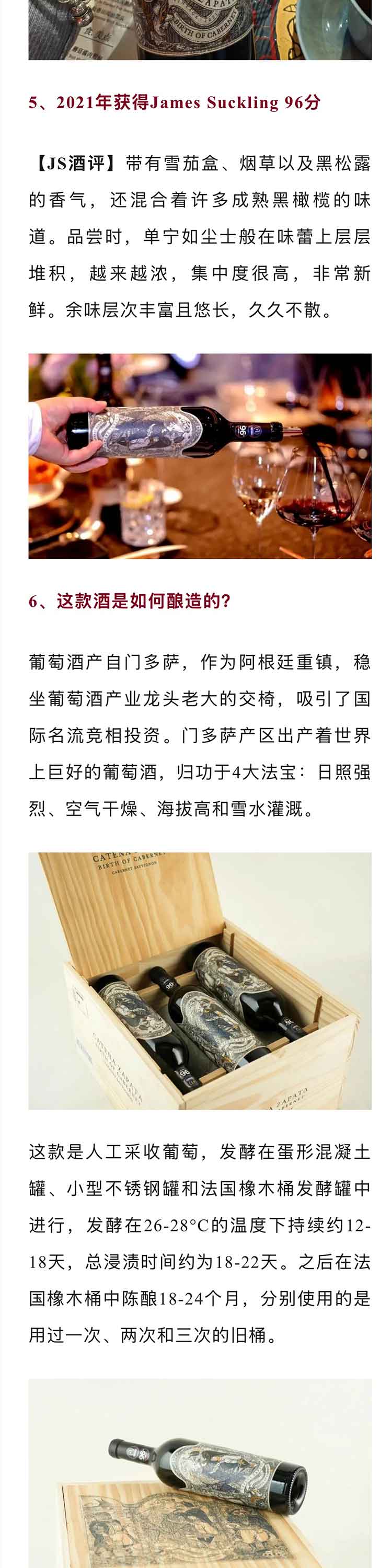 【JS 96分】阿根廷卡帝娜酒庄2021年使徒赤霞珠干红