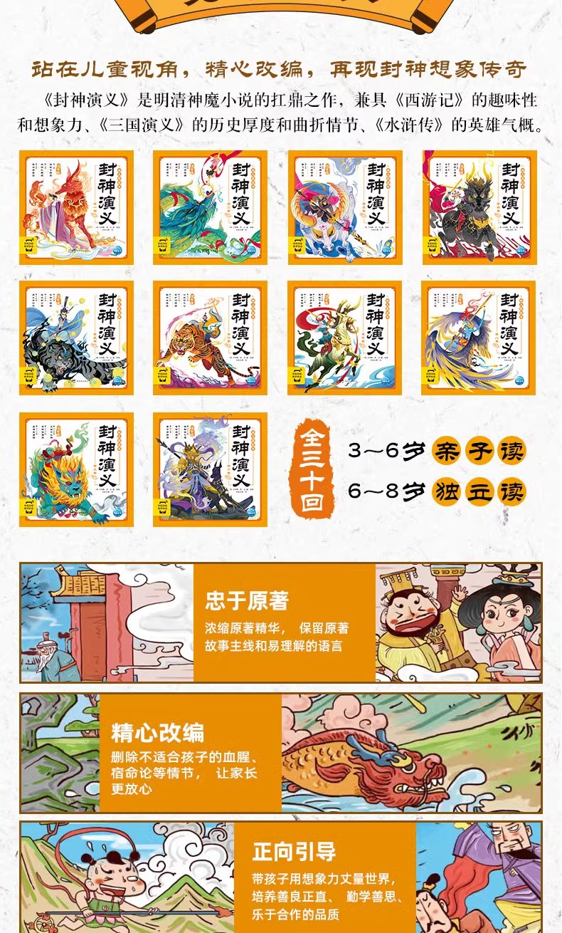 幼儿美绘封神演义幼儿美绘本10册美绘本注音版点读版扫码伴读儿童睡前故事书38岁中国古代故事