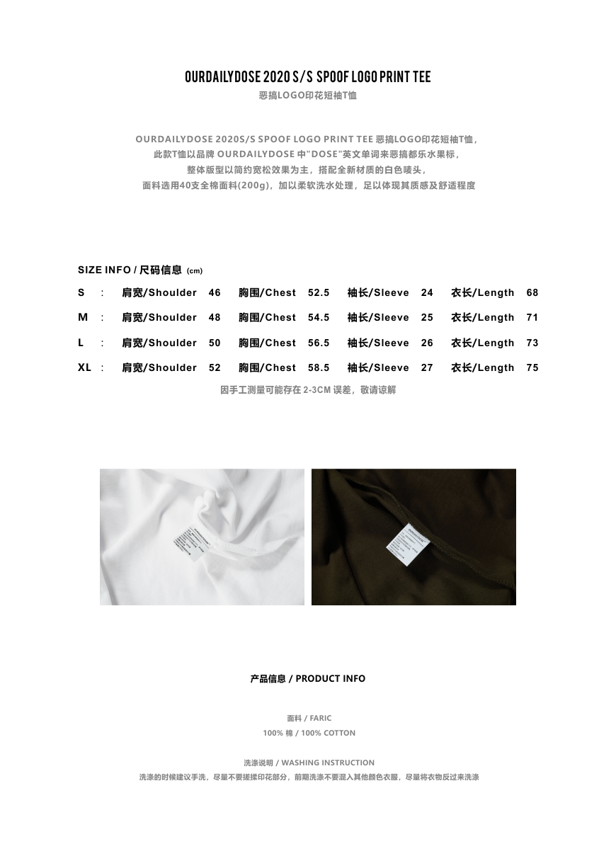 OURDAILYDOSE 原创日系潮牌 恶搞LOGO宽松水洗圆领短袖休闲T恤男