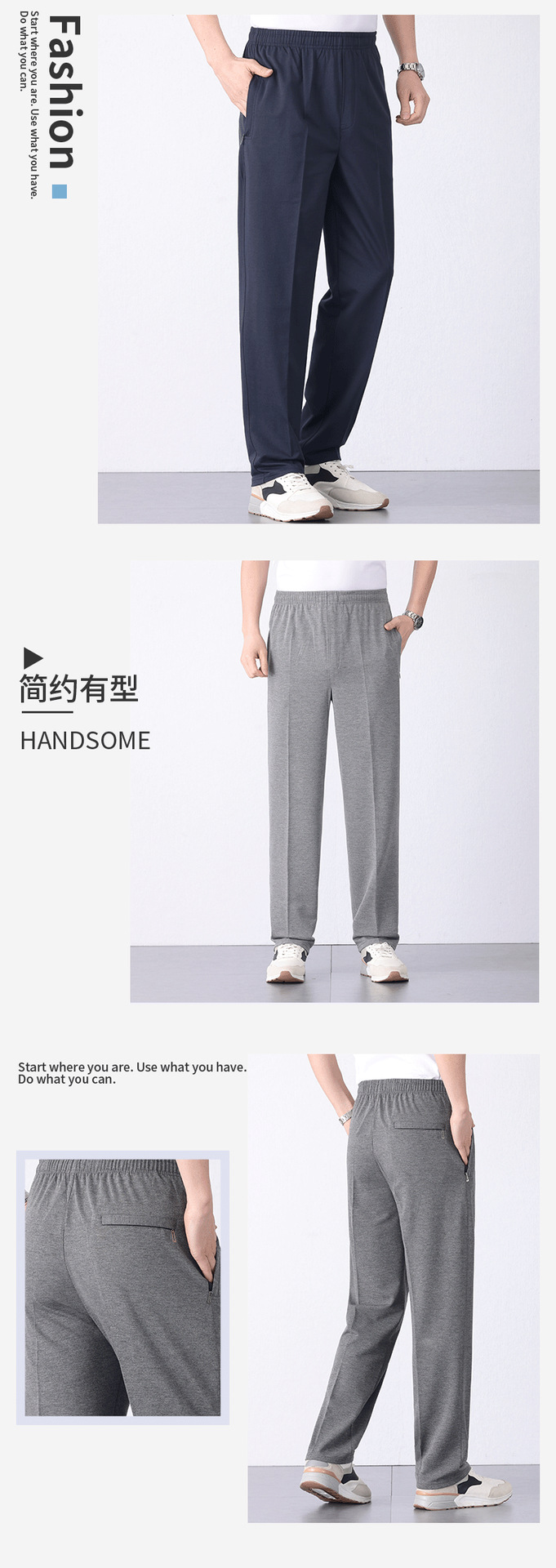 夏季薄款爸爸运动裤男士直筒高腰中老年休闲长裤中年裤子男透气棉 商品图0