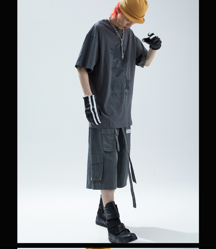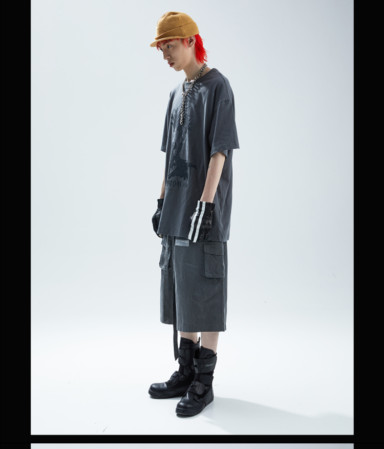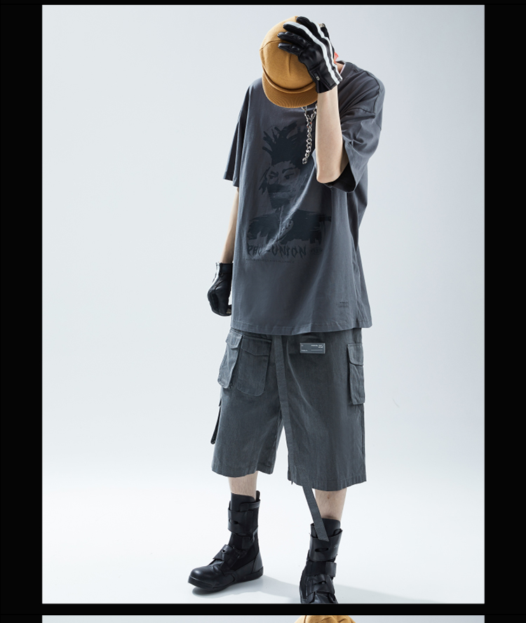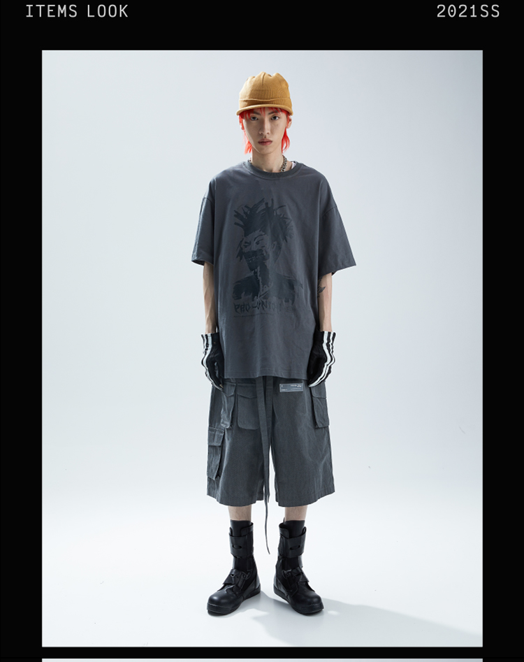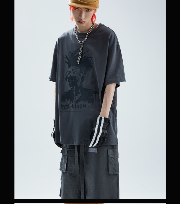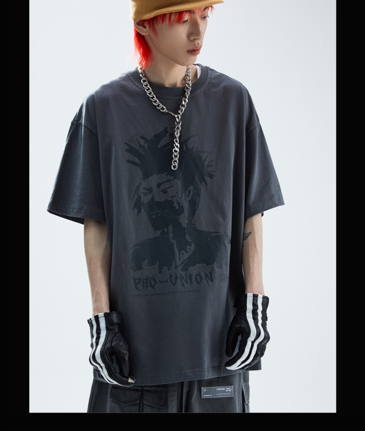 SFTTR 2021SS 人像做旧复古手绘摇滚头像灰色男女印花短袖T恤Tee
