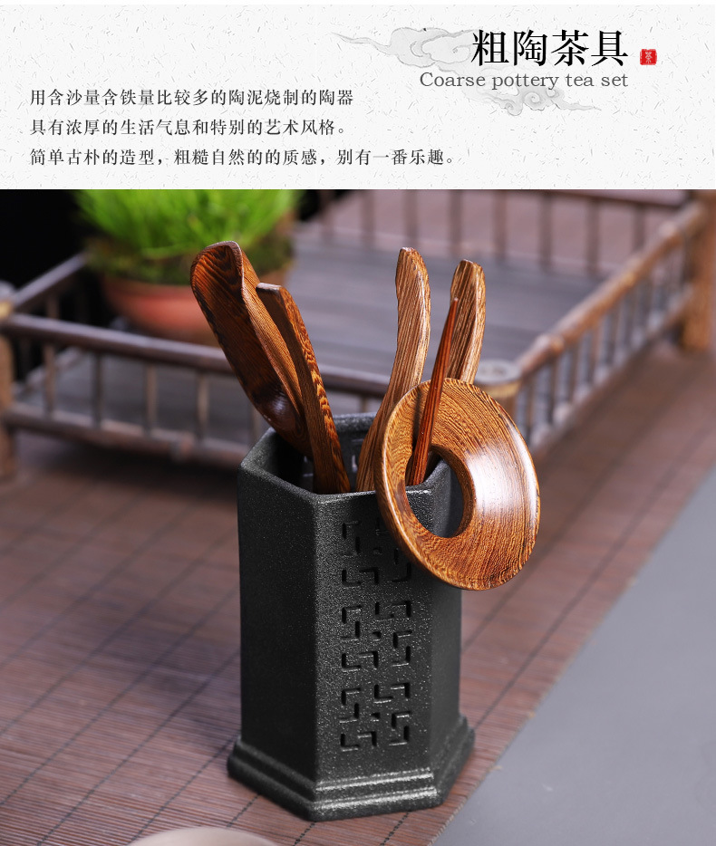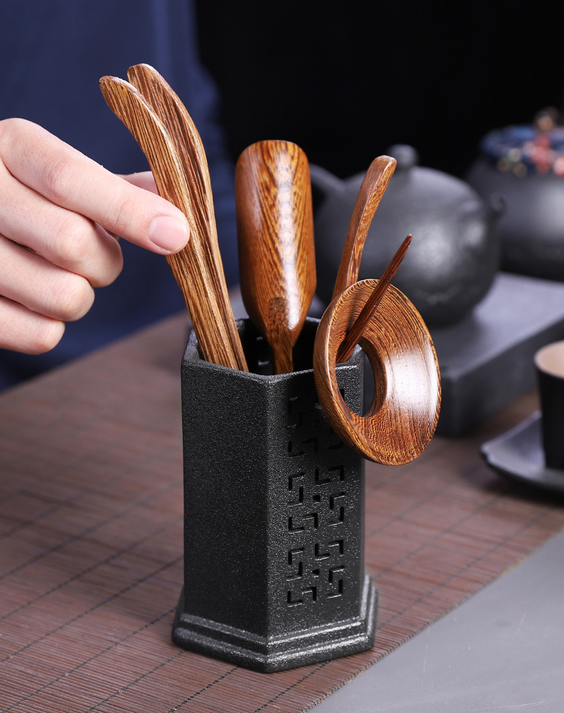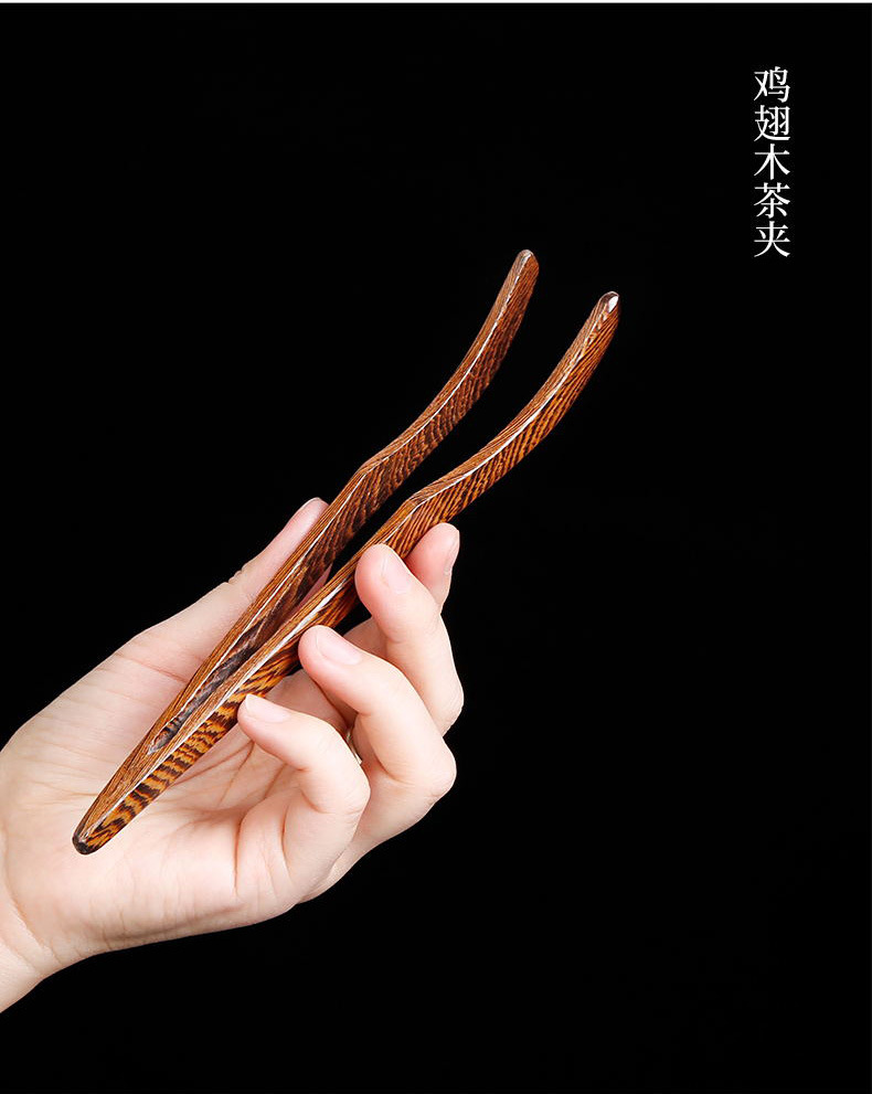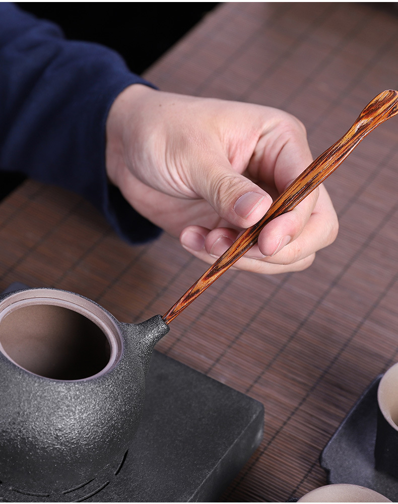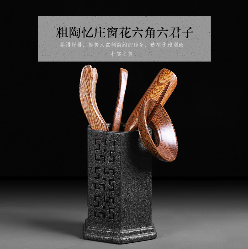 粗陶茶道六君子鸡翅木实木茶夹子茶艺组合整套摆件复古茶具零配件