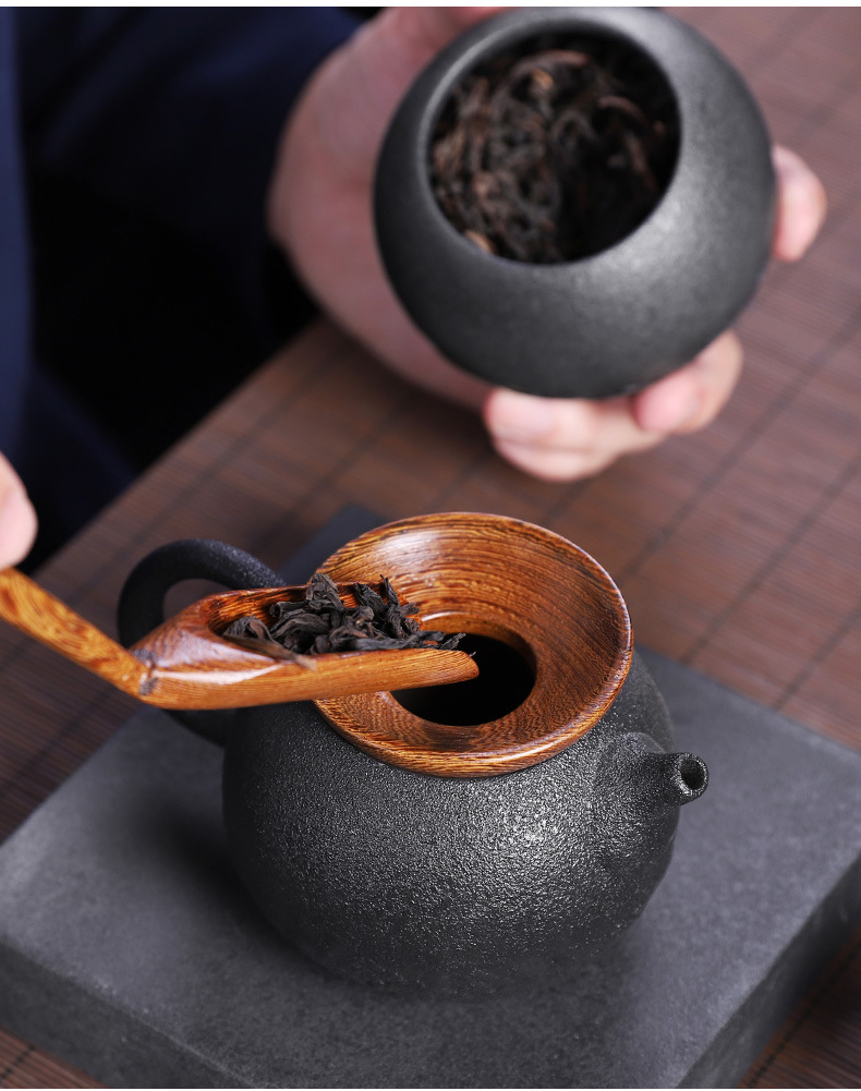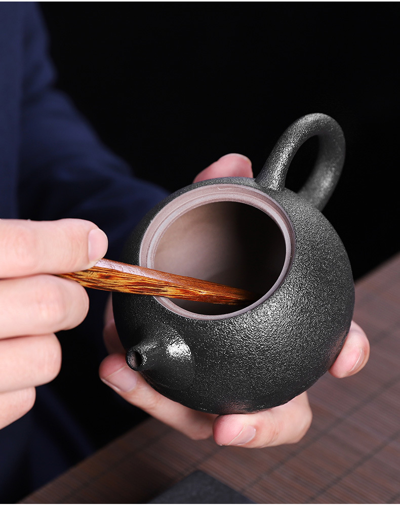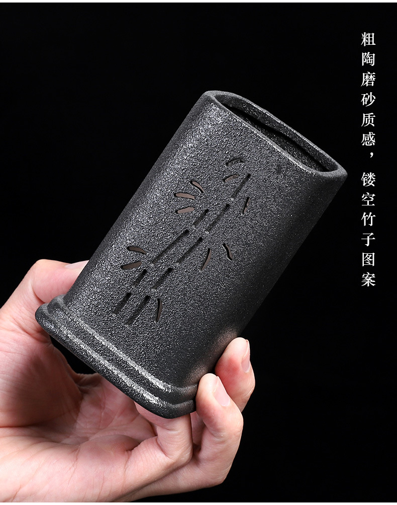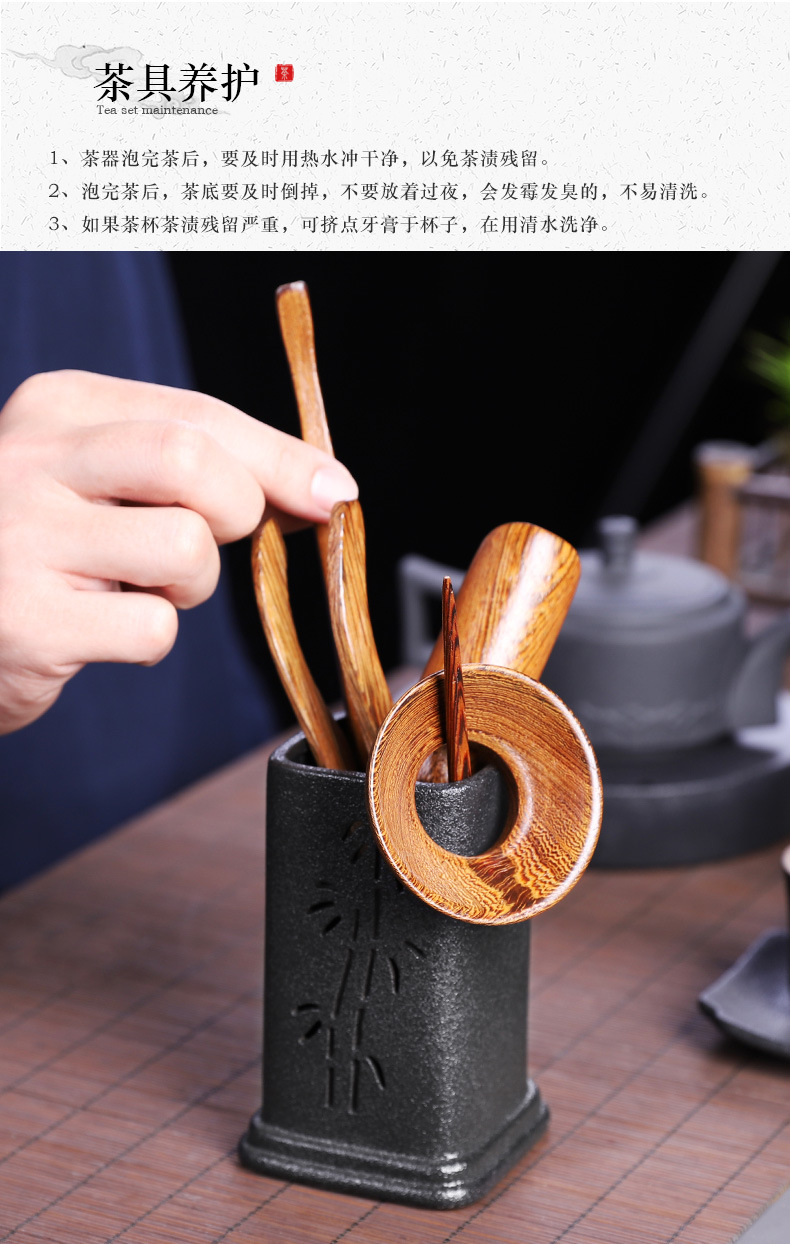 粗陶茶道六君子鸡翅木实木茶夹子茶艺组合整套摆件复古茶具零配件