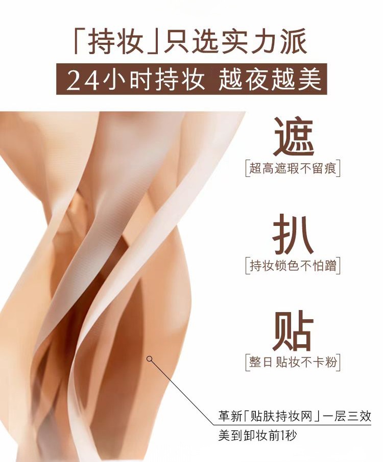 持久遮瑕:一抹遮瑕,毛孔、痘印、红血丝悄然隐褪