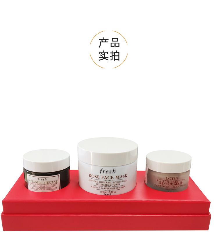 法国 FRESH馥蕾诗 限量面膜旅行套装3件套 玫瑰100ml+维他命30ml+睡莲30ml