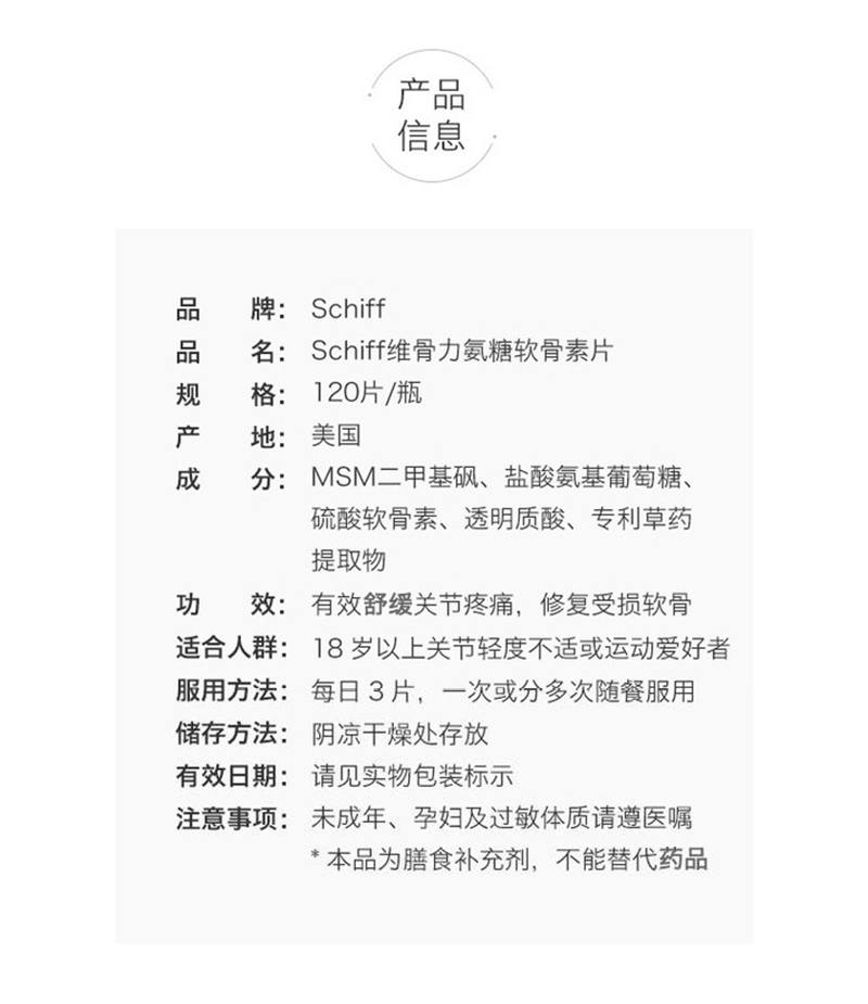 美国维骨力 氨糖软骨素片 绿瓶 120粒 缓解关节疼痛肿胀