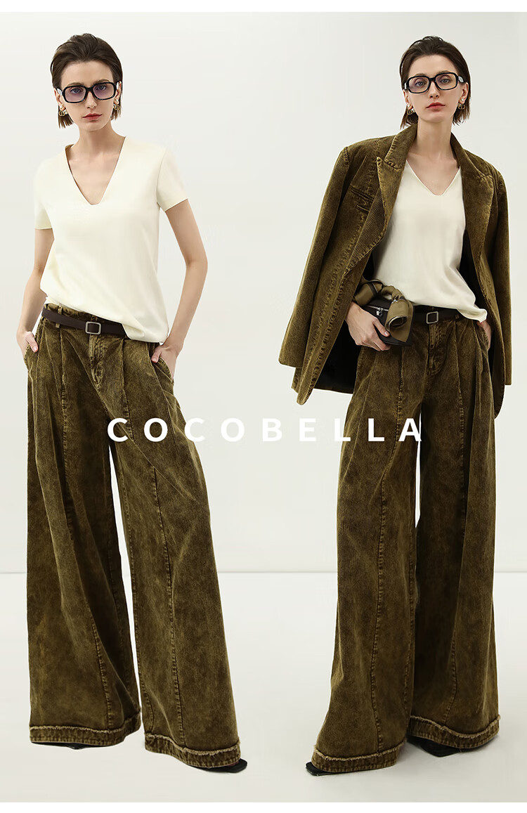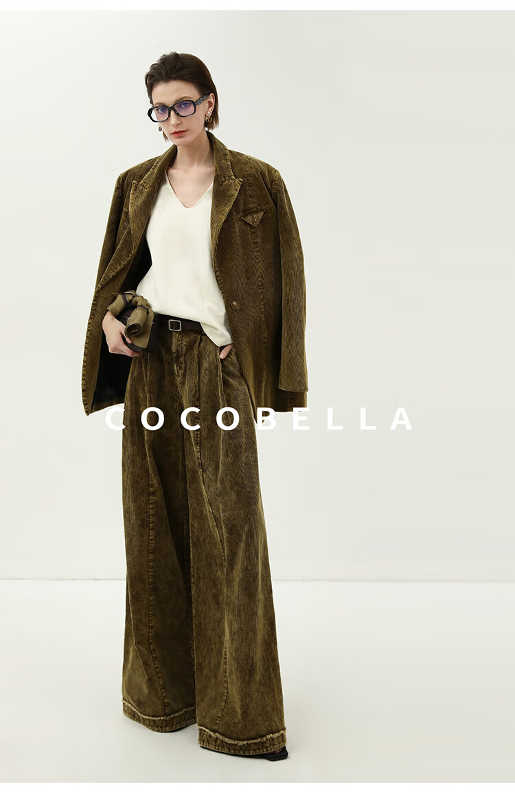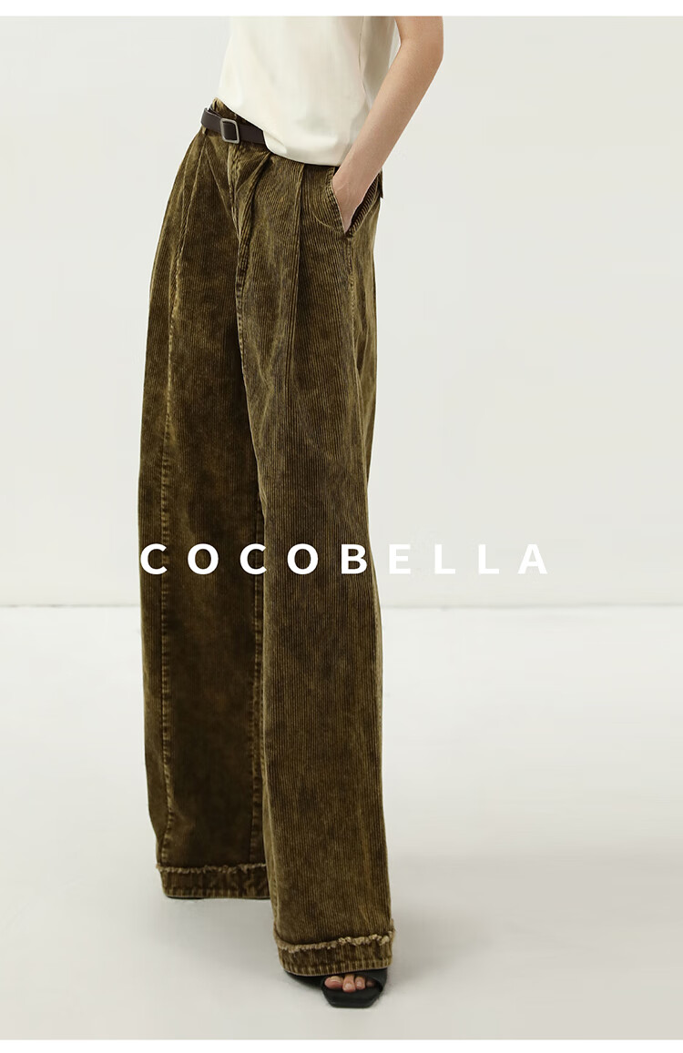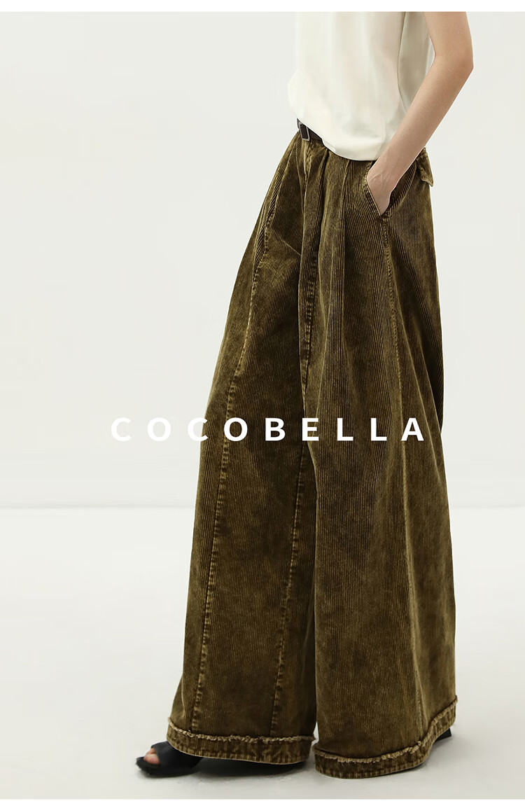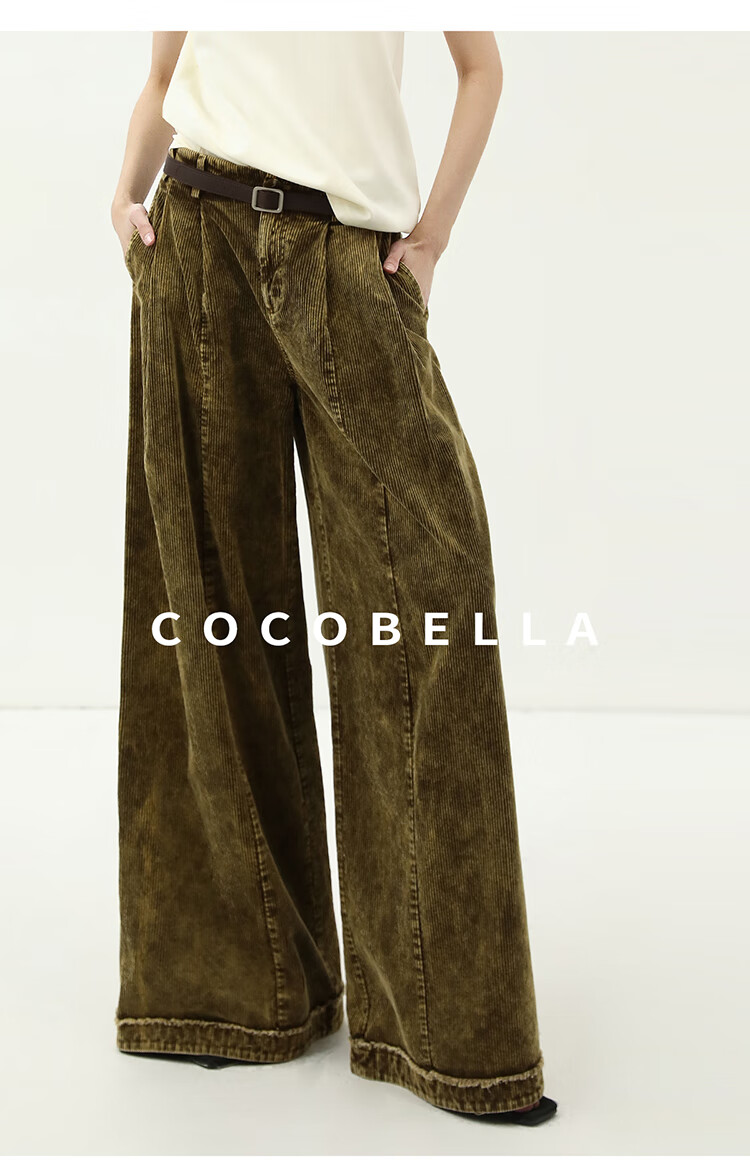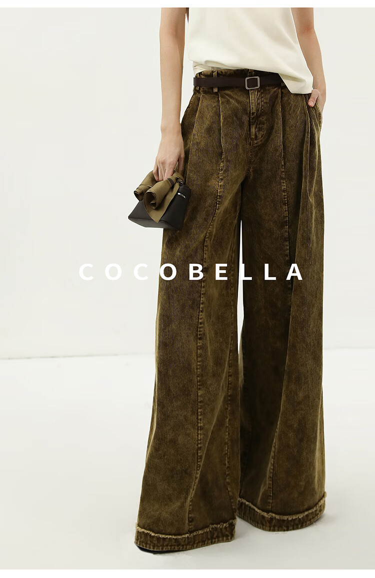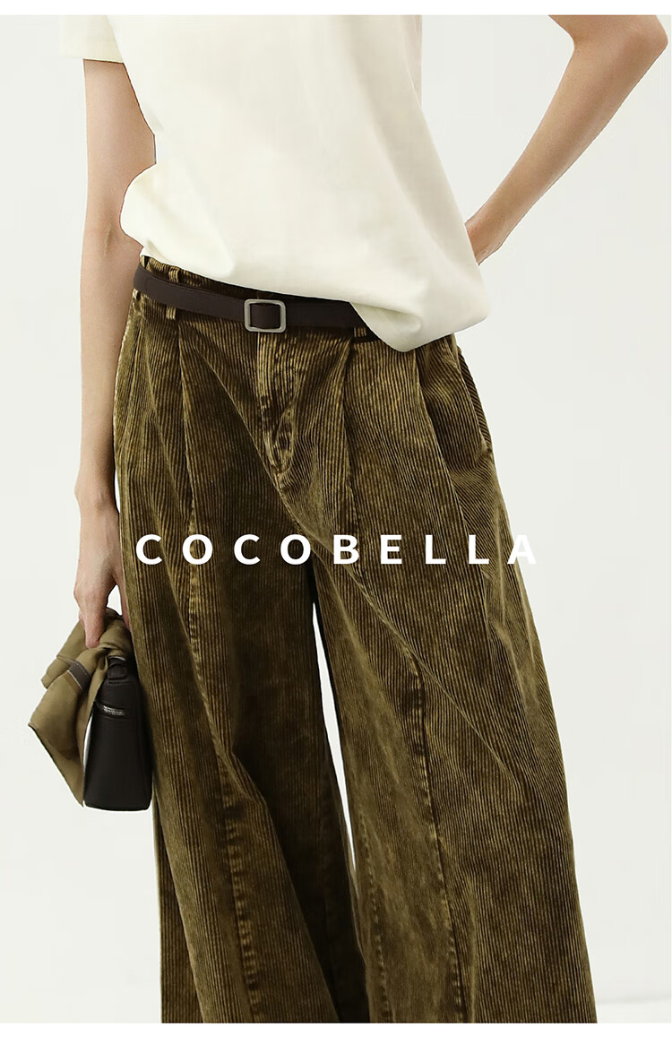 COCOBELLA环保水洗灯芯绒阔腿裤25春女宽松直筒休闲裤PA7043