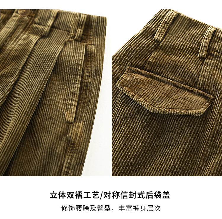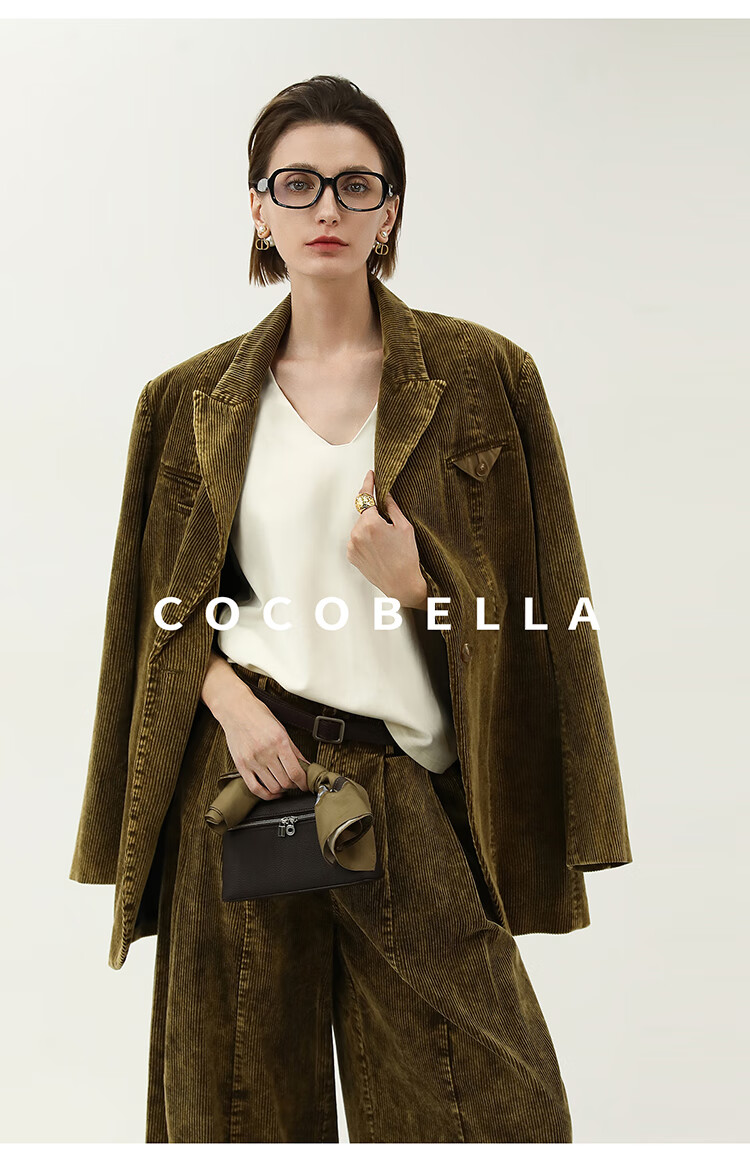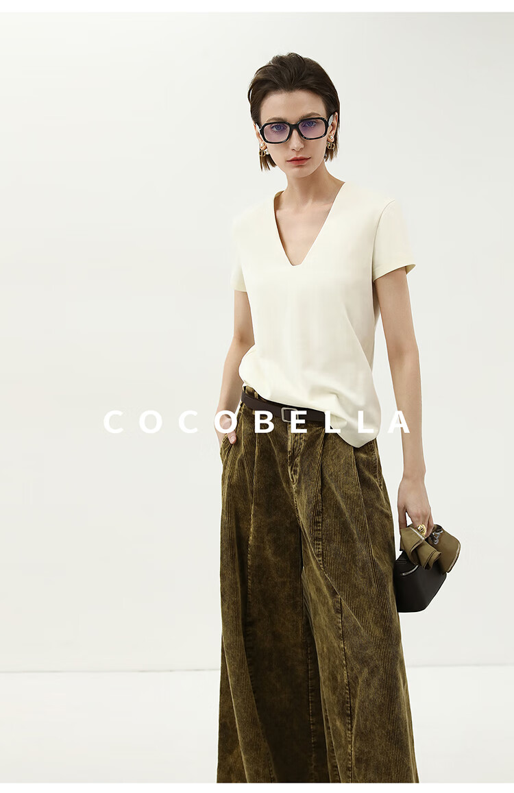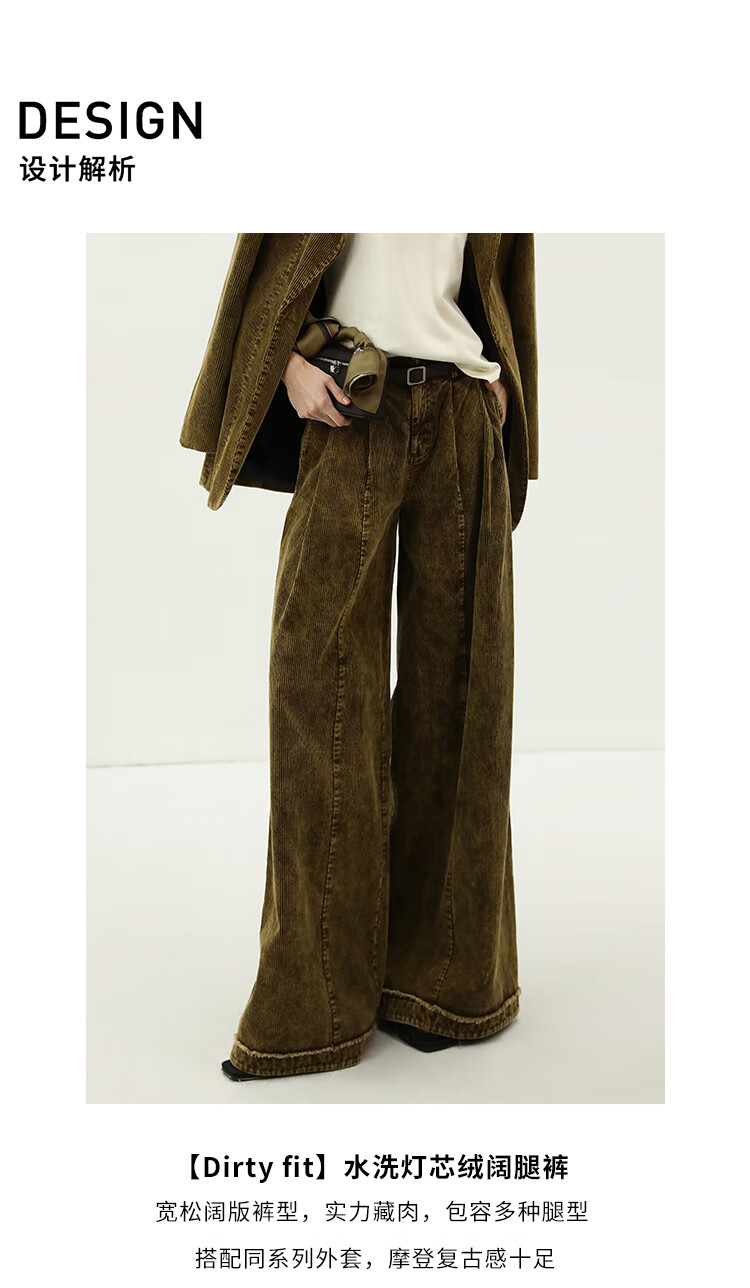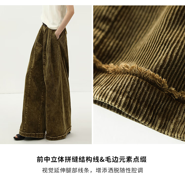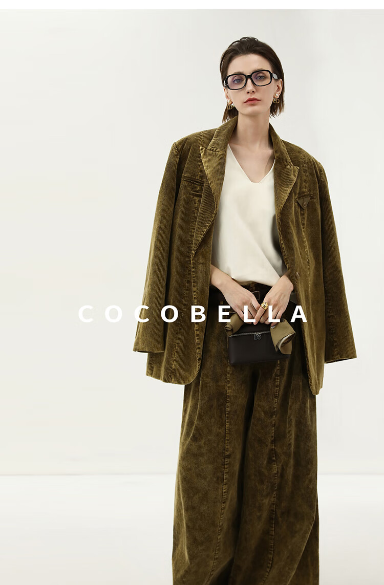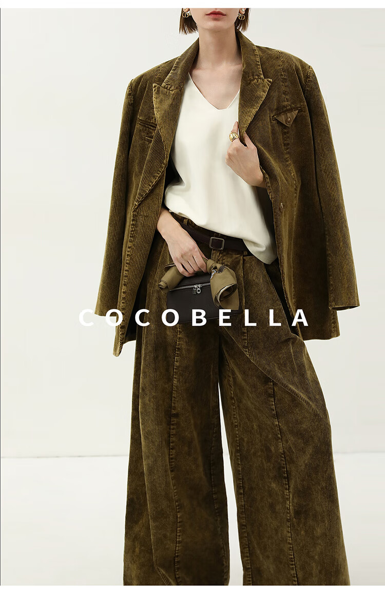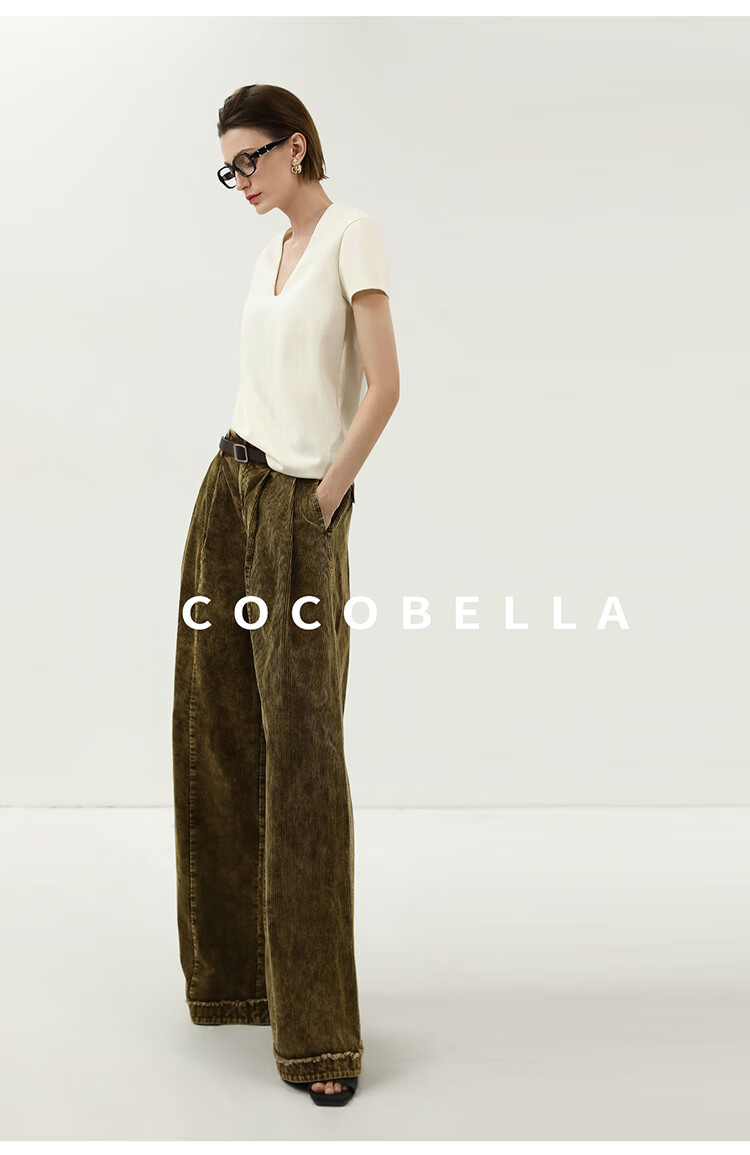 COCOBELLA环保水洗灯芯绒阔腿裤25春女宽松直筒休闲裤PA7043