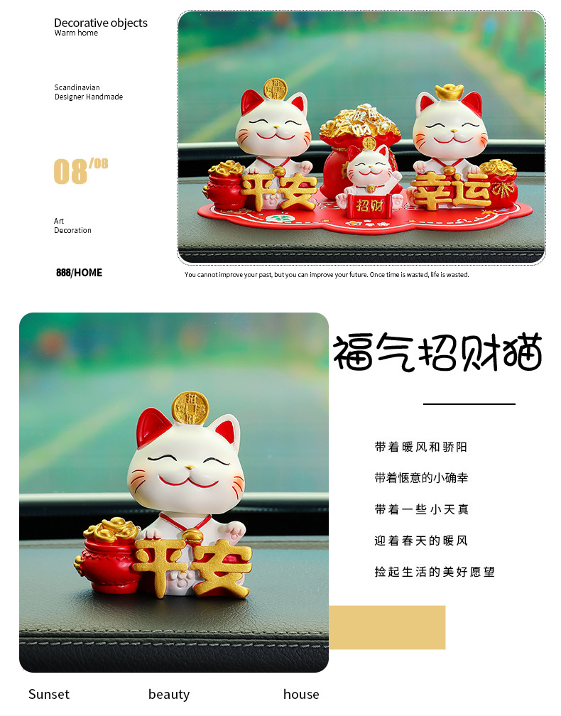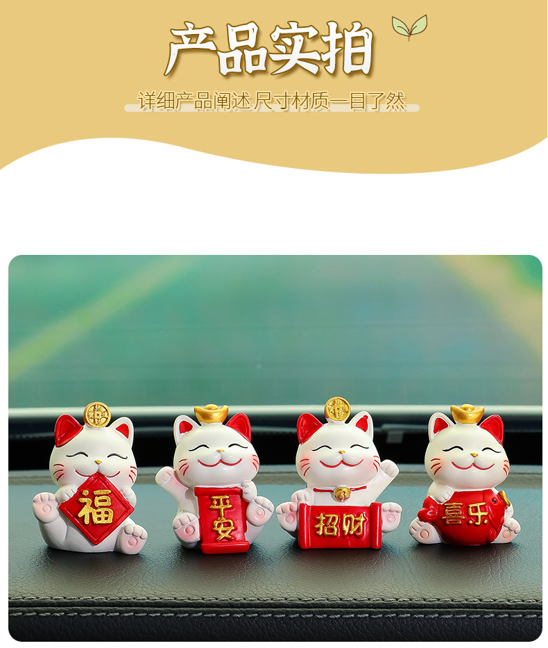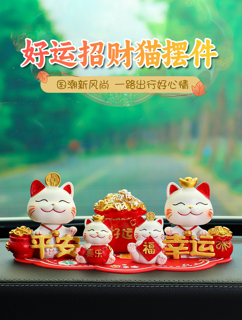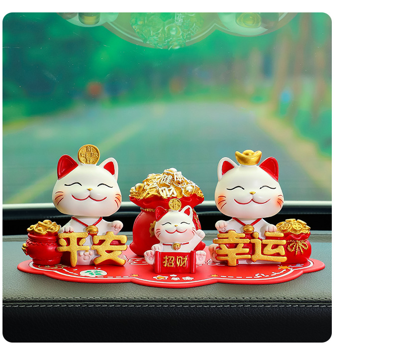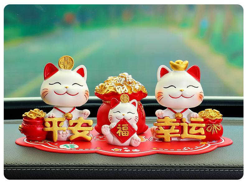 原创设计【国潮新风尚 好运一路随】新款摇头招财猫车载摆件 中控台可爱喜乐平安猫装饰 红色平安防滑垫
