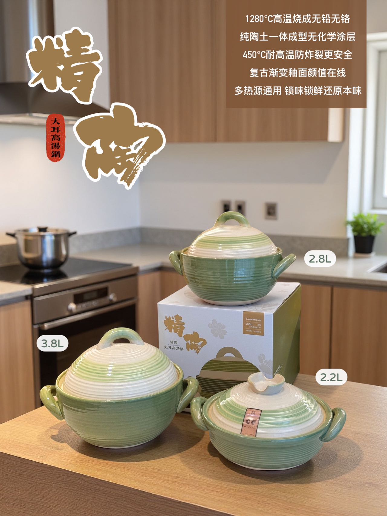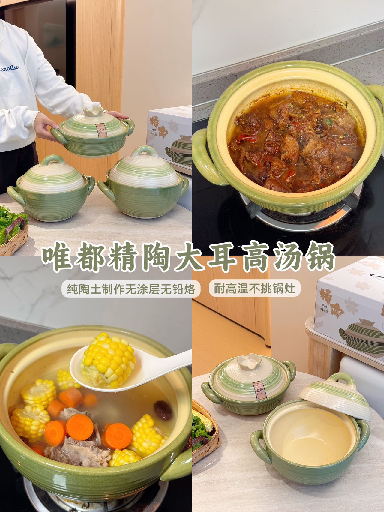 【唯都精陶大耳高汤锅/焖烧煲】✅1280℃高温煅烧,去杂质无铅铬,健康无害。 ✅纯陶土一体成型,无化学涂层,使用安心。-SJMY
