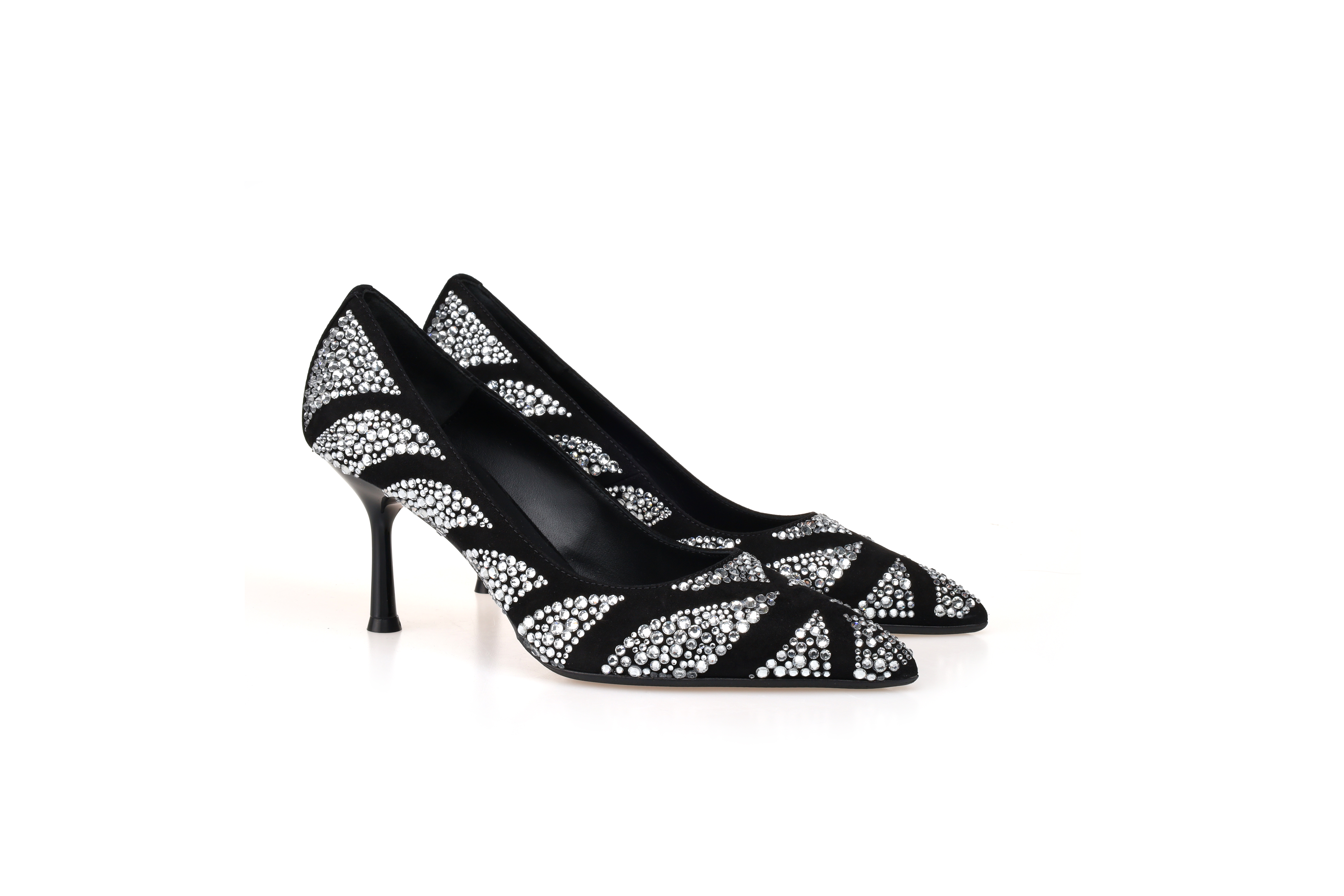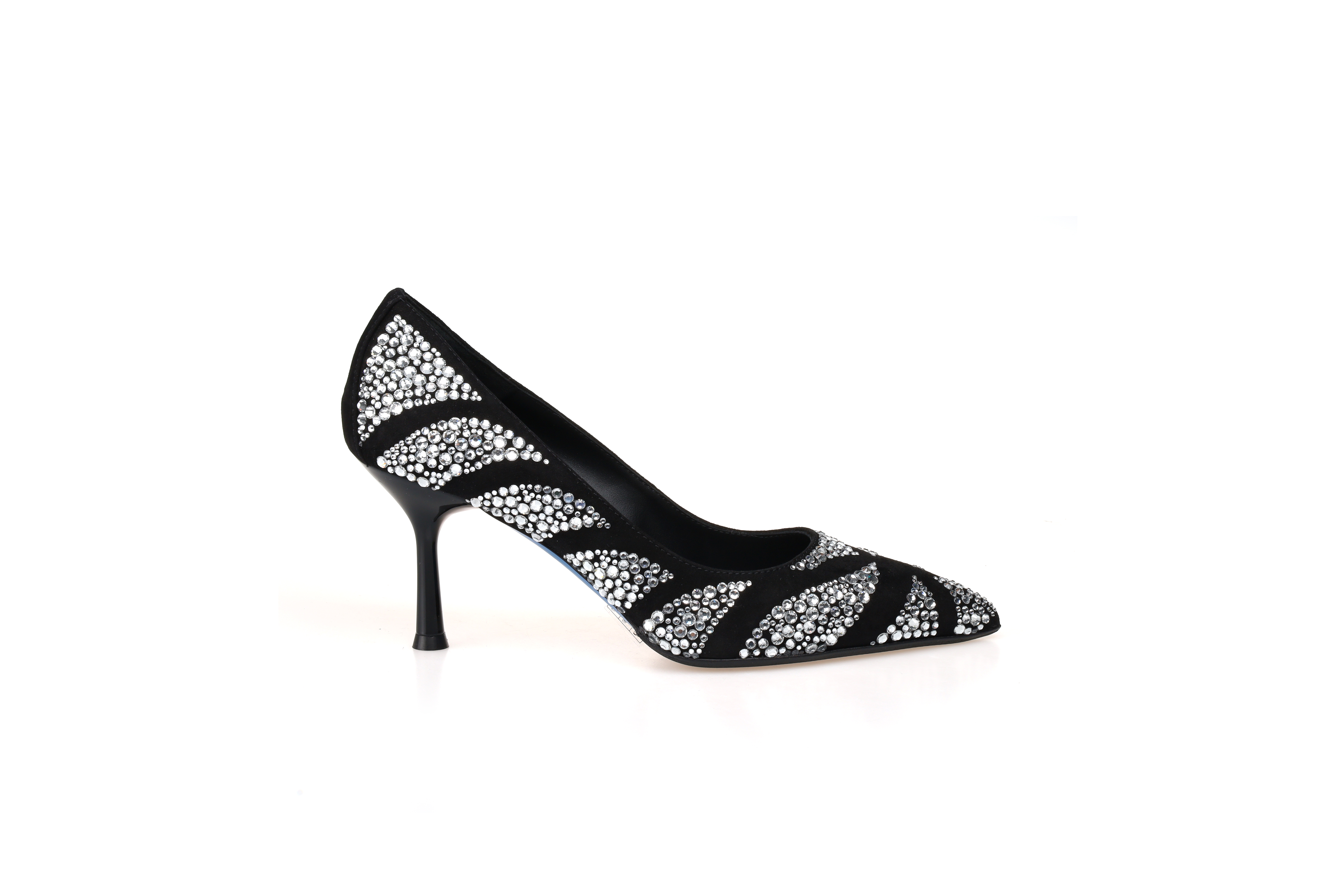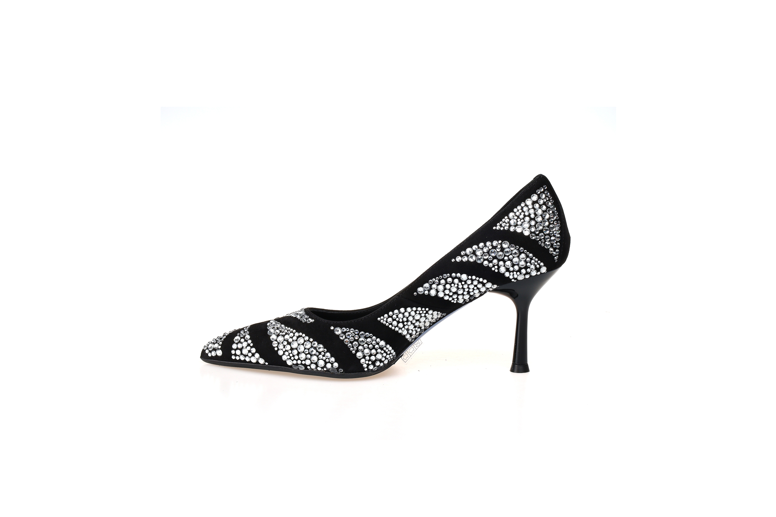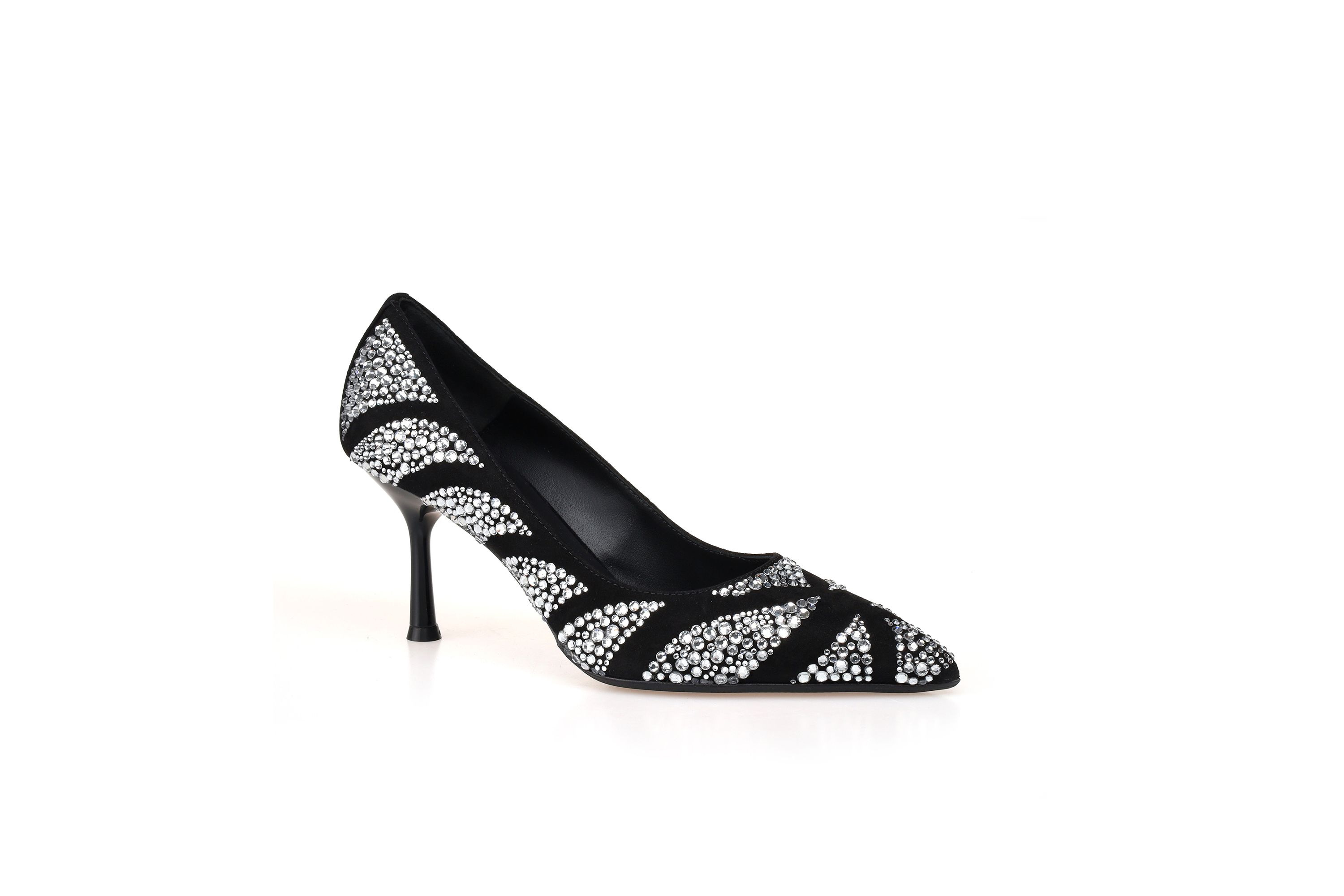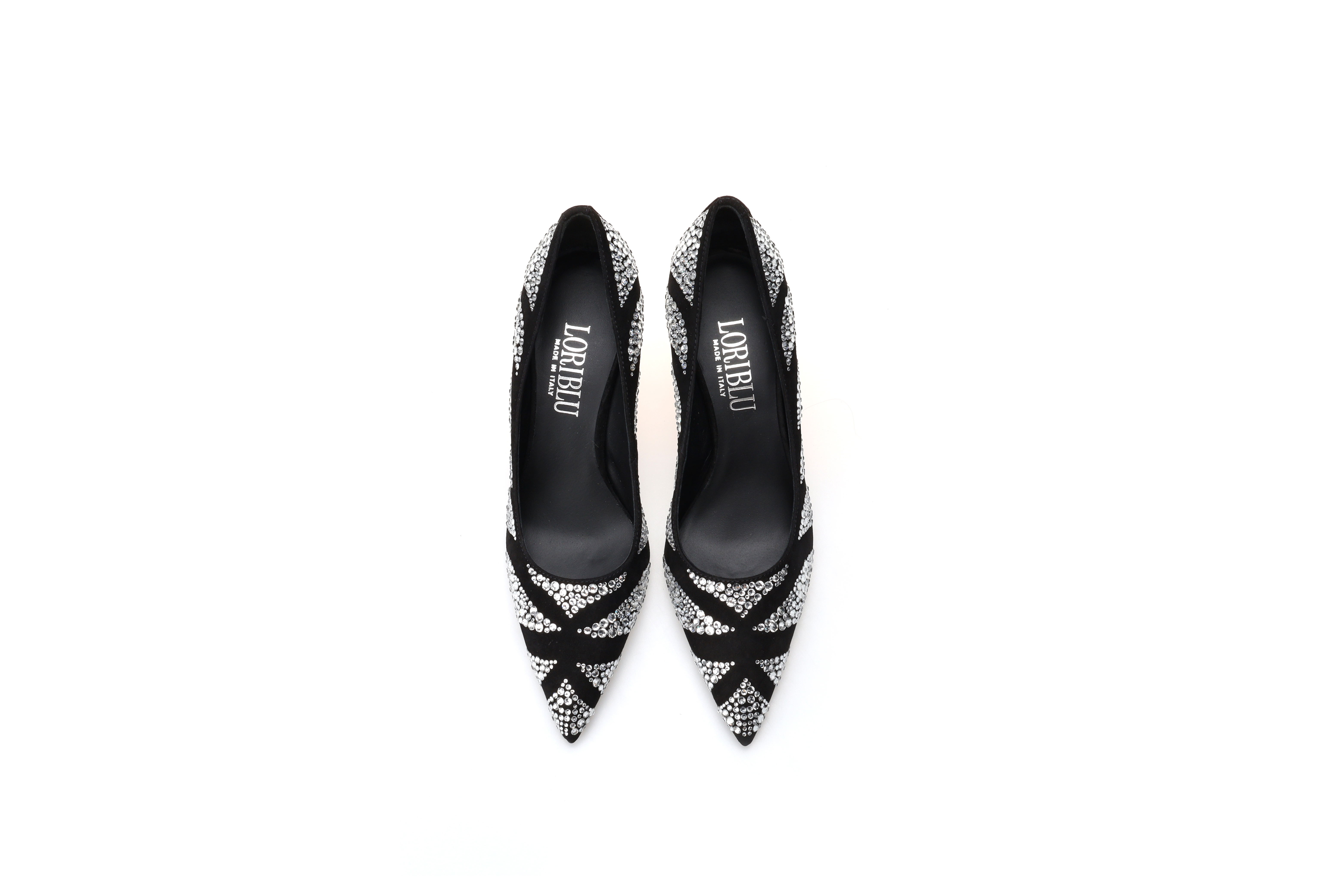 豪麟名鞋奥莱LORIBLU女鞋皮鞋羊反绒面革+施华洛世奇LR00400P黑色 原价5660元