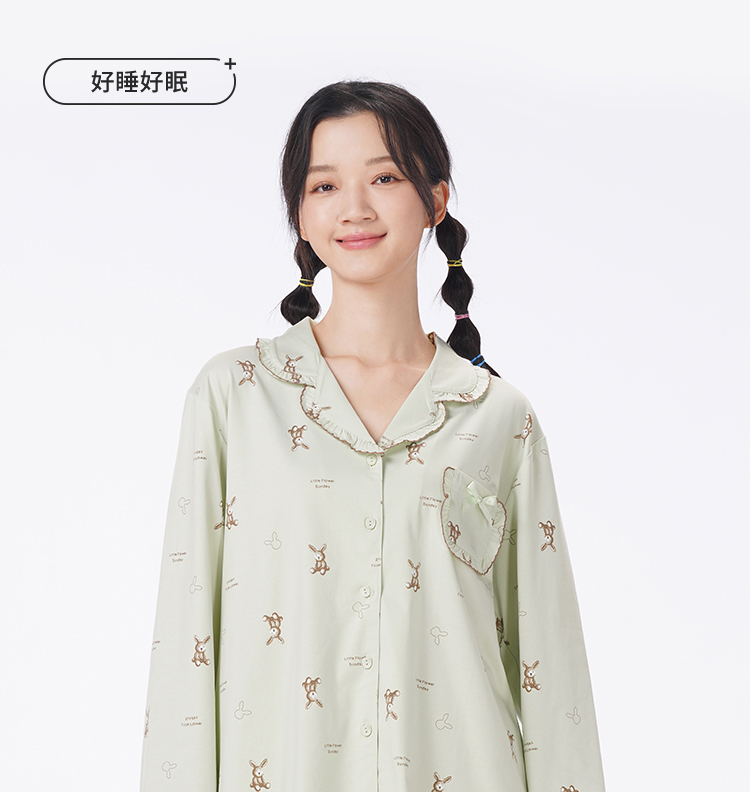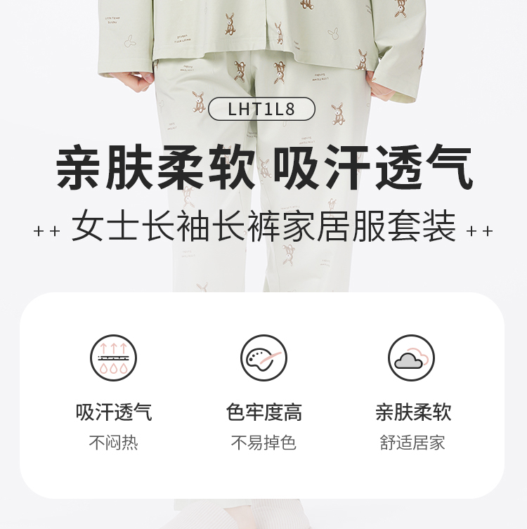都市丽人睡衣生活家居长袖家居服26支CVC单面薄女士棉质套装LHT1L8