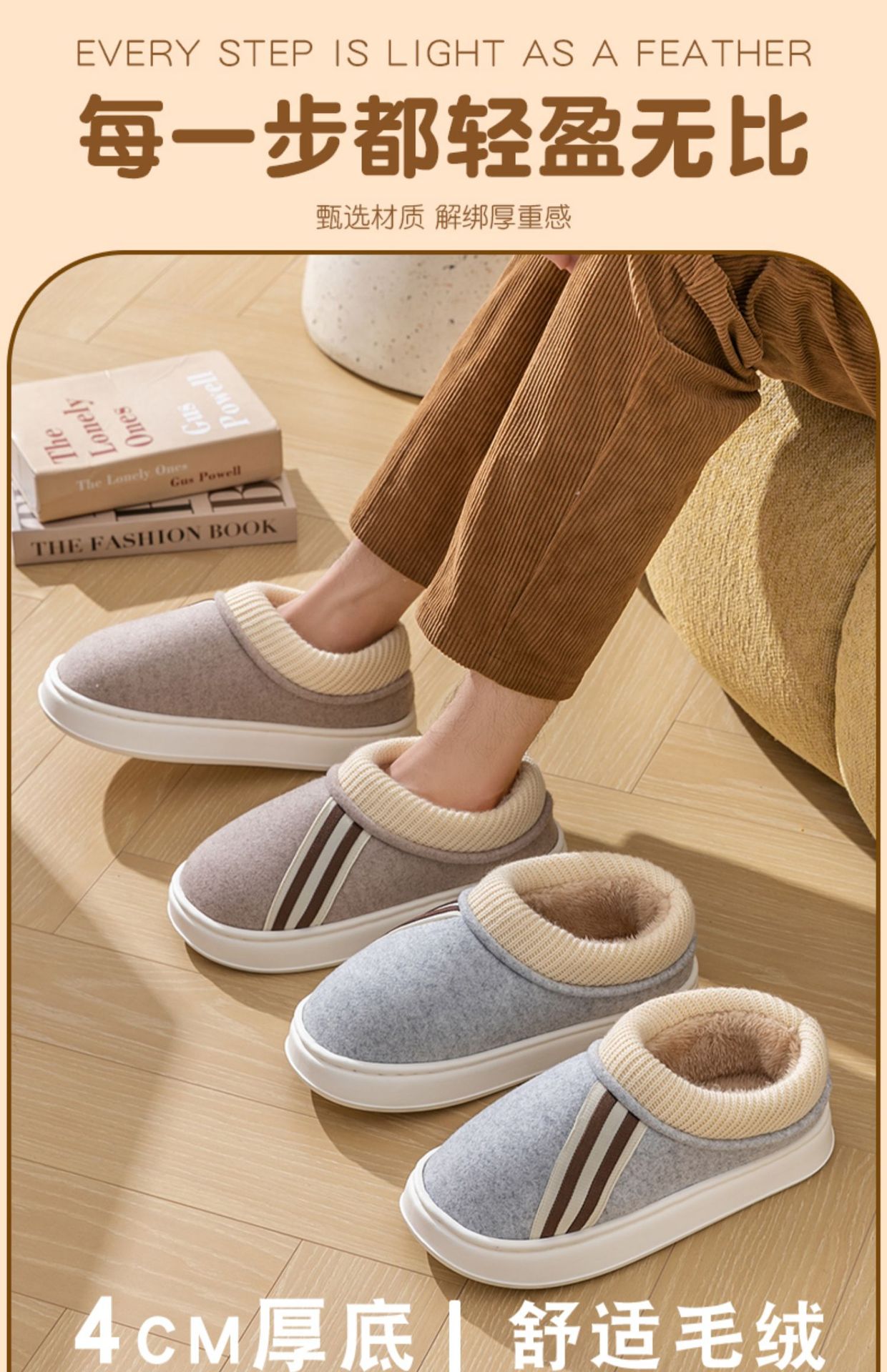 「五款配色!包跟款」踩屎感包跟棉鞋男士秋冬季情侣室内家居毛绒厚底保暖家用棉鞋女款