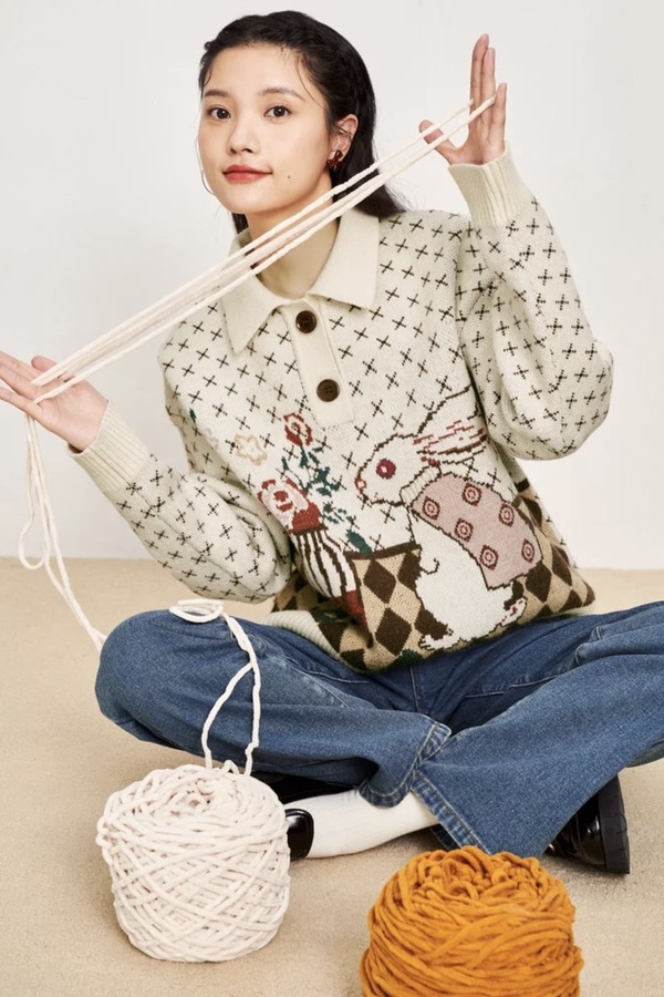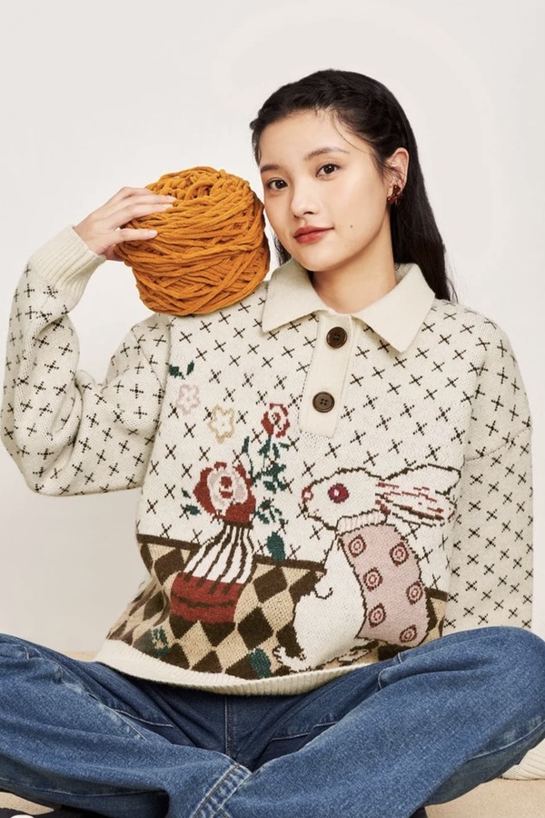 WESTLINK/西遇 复古针织polo领毛衣 15355