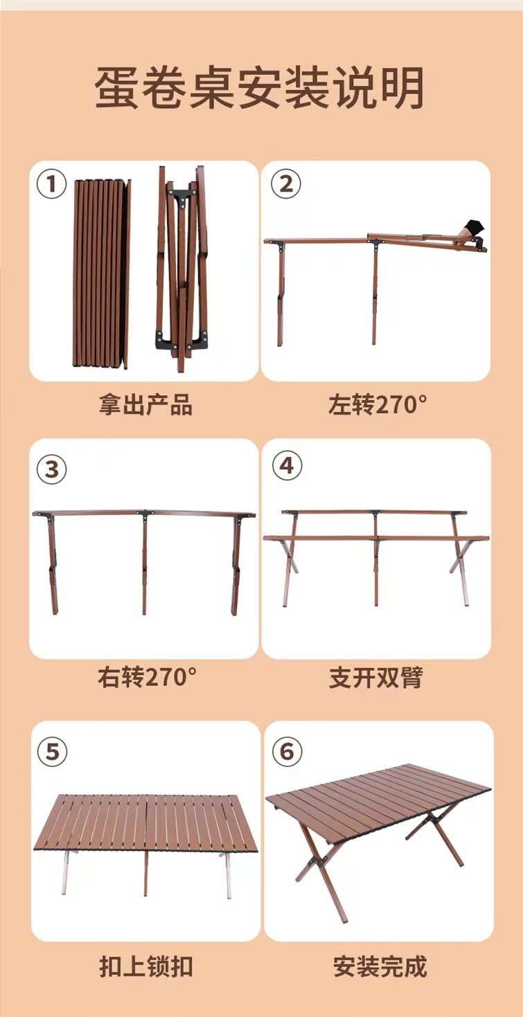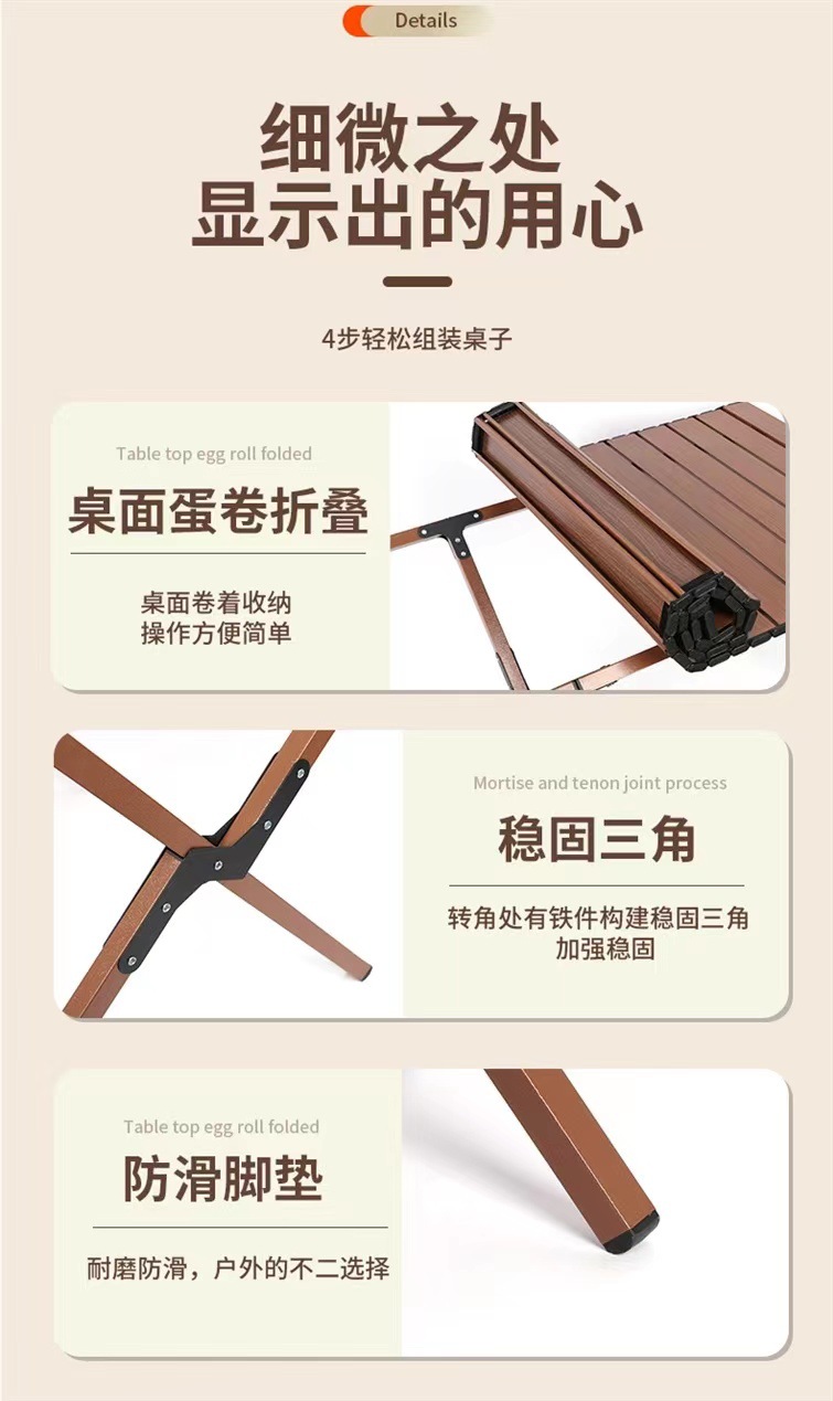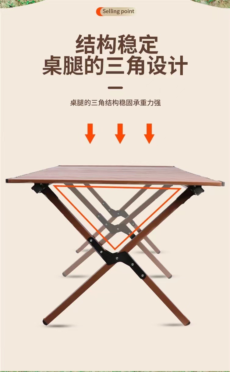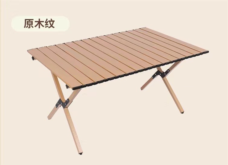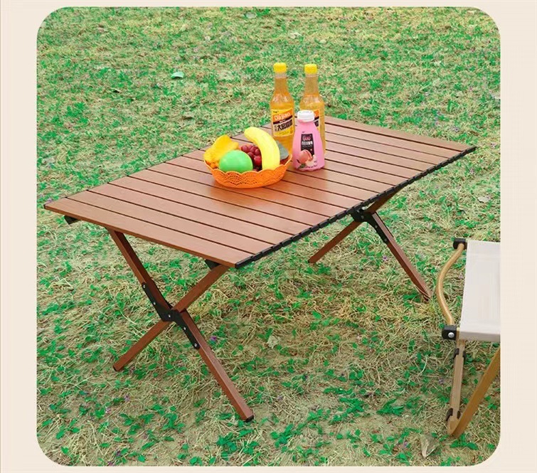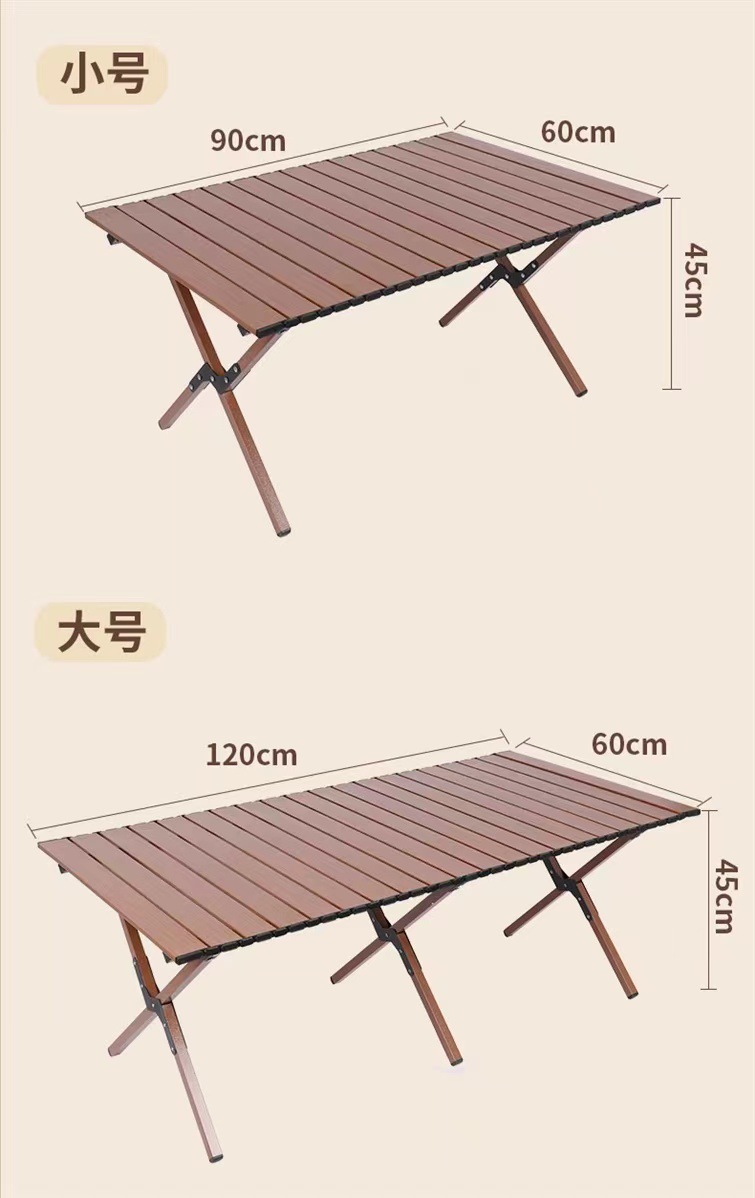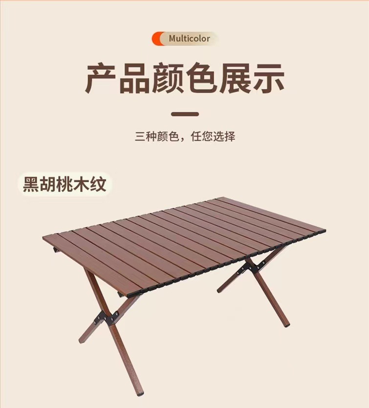 【轻松出行!畅享户外生活乐趣】新款户外蛋卷桌,稳固耐用,轻便木纹野餐桌,多场景适用。助你畅享露营烧烤生活!