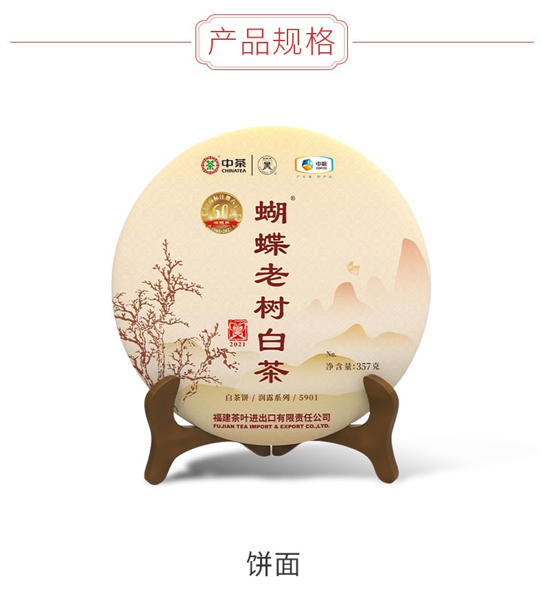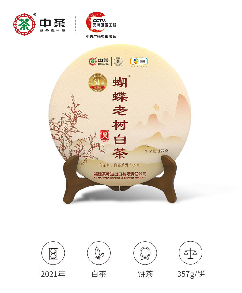 中粮-中茶蝴蝶牌六十周年纪念款老树白茶FT5901(定制款)357g/饼