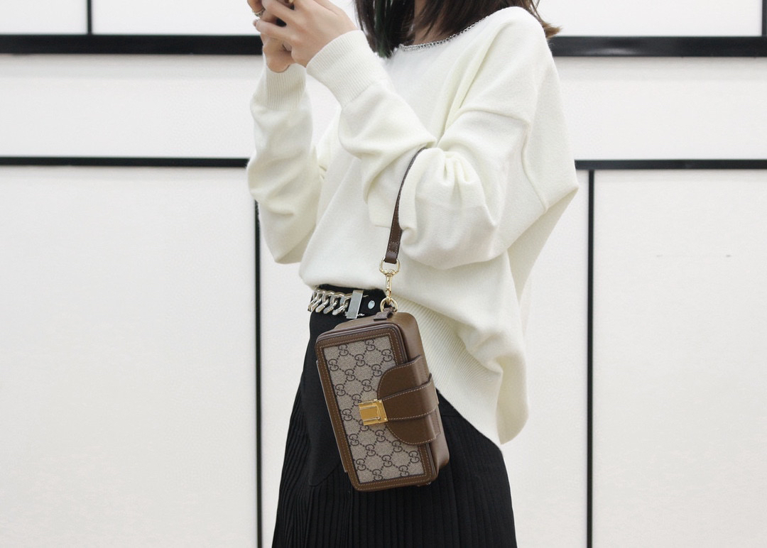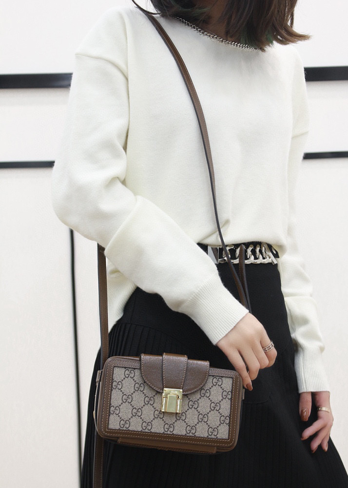 四方盒子包,每一处都是设计师的灵魂设计,这款方形盒子包从复古的旅行配件中摄取灵感,采用精髓标志性图案搭配棕色皮质设计,完全演绎出了一款男女可共同的盒子小包,作为情侣款搭配,绝对是满分的好评,别看它迷你的身影,实际上,日常的容纳量都能满足你!