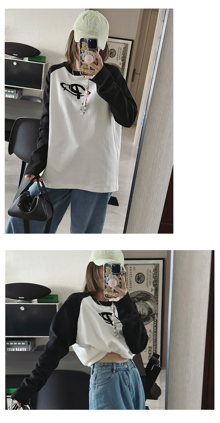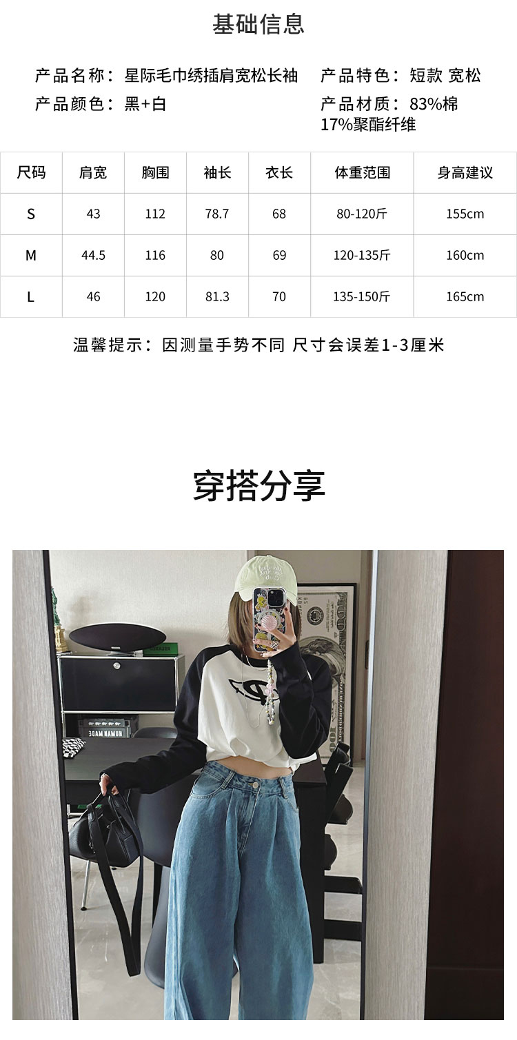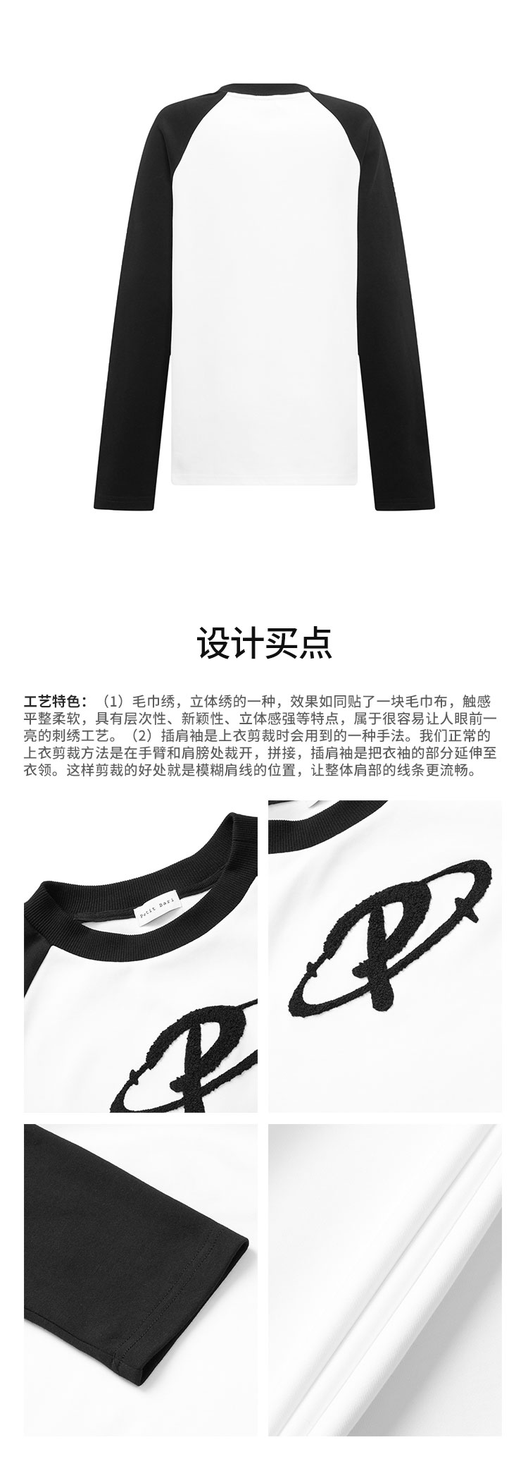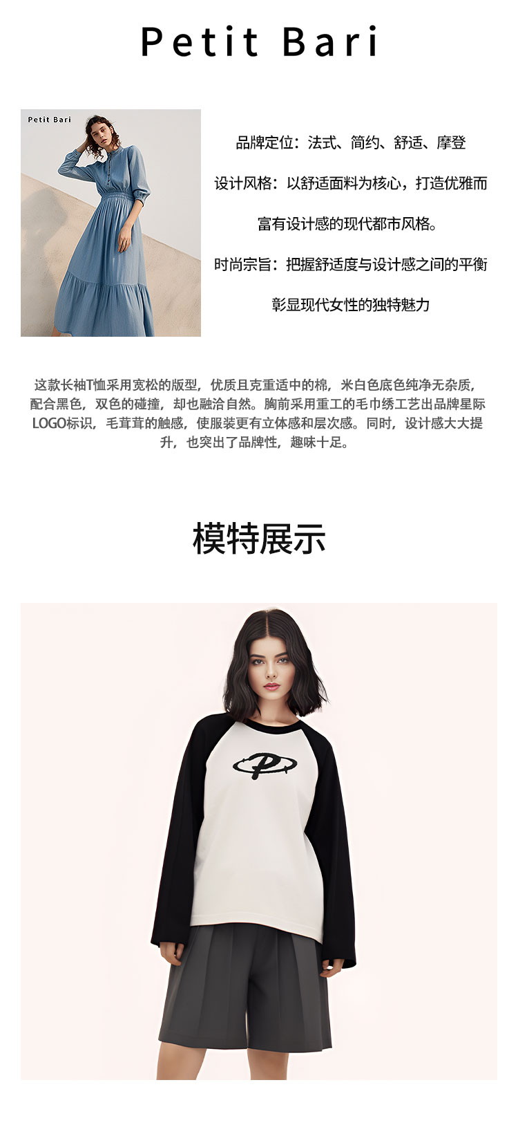 【2件9折】【Petit Bari】星际毛巾绣插肩宽松女士长袖T恤设计感百搭