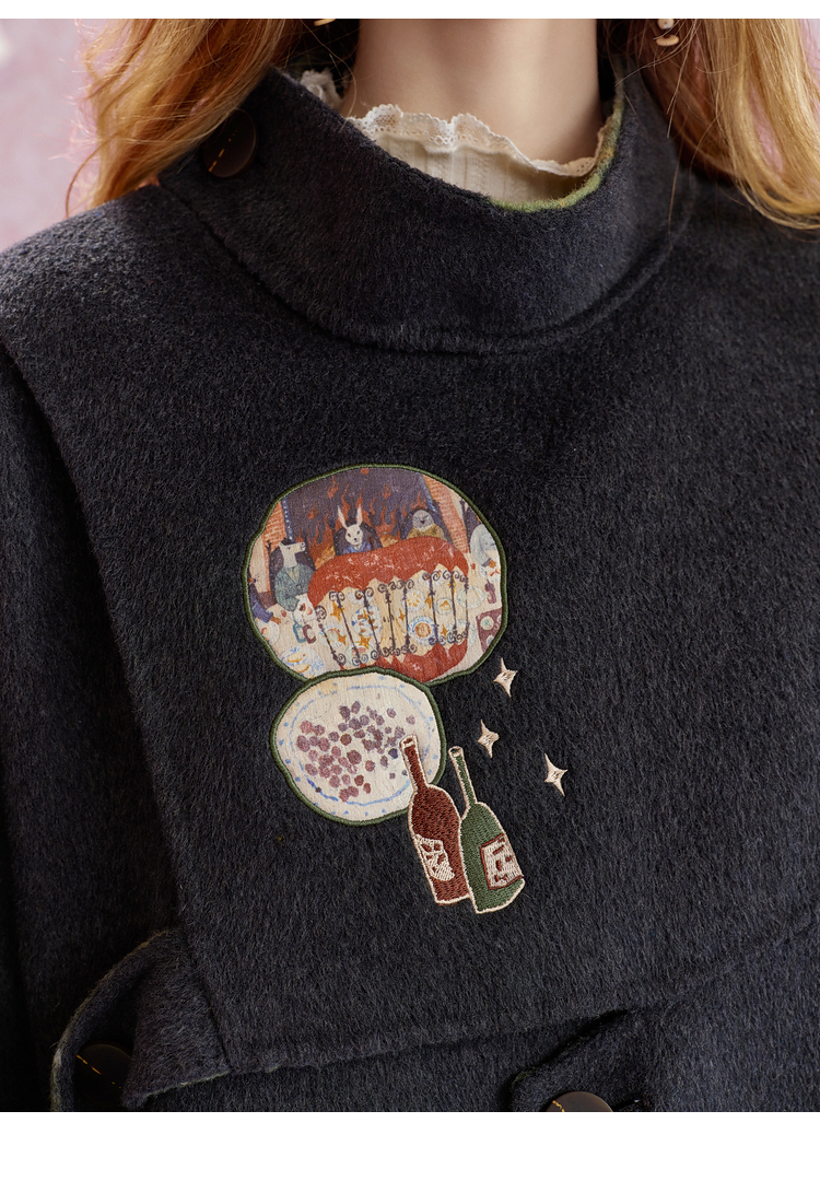 【暖冬内购】两三事梵高文艺 向阳微光 2024冬季新款复古绣花海军领毛呢外套女