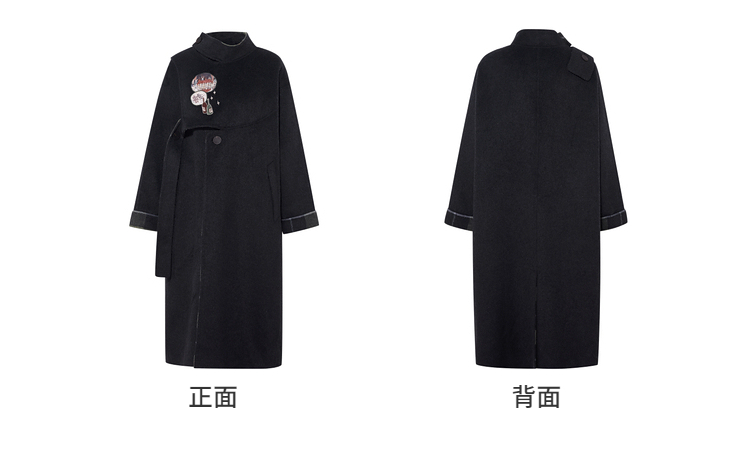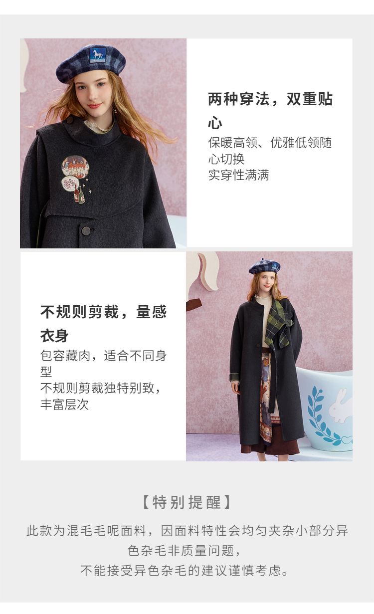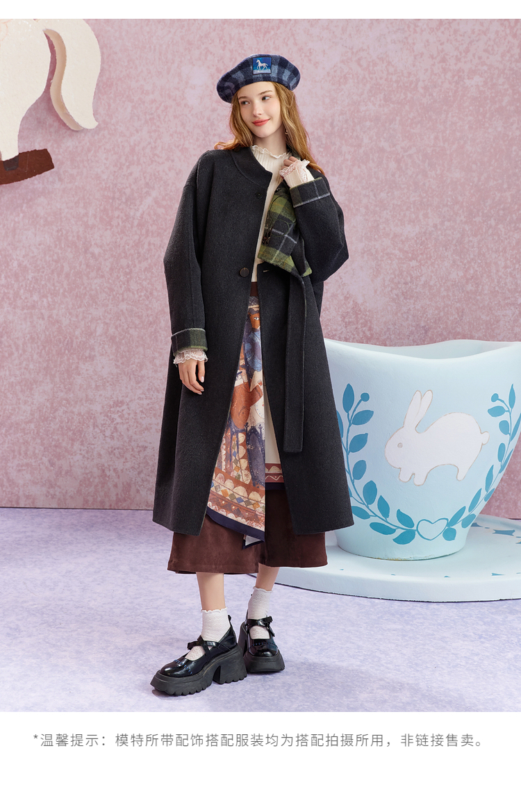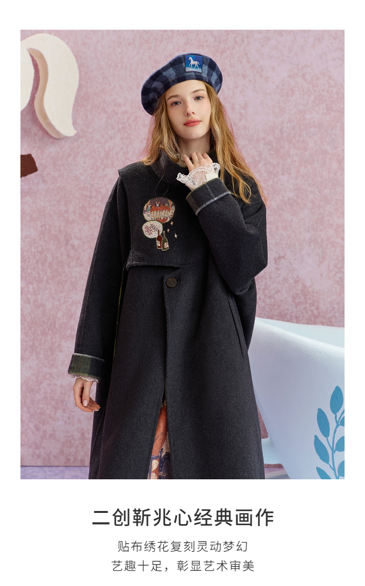 【暖冬内购】两三事梵高文艺冬日恋歌2025秋冬新款绣花腰带拼色双面毛呢外套女