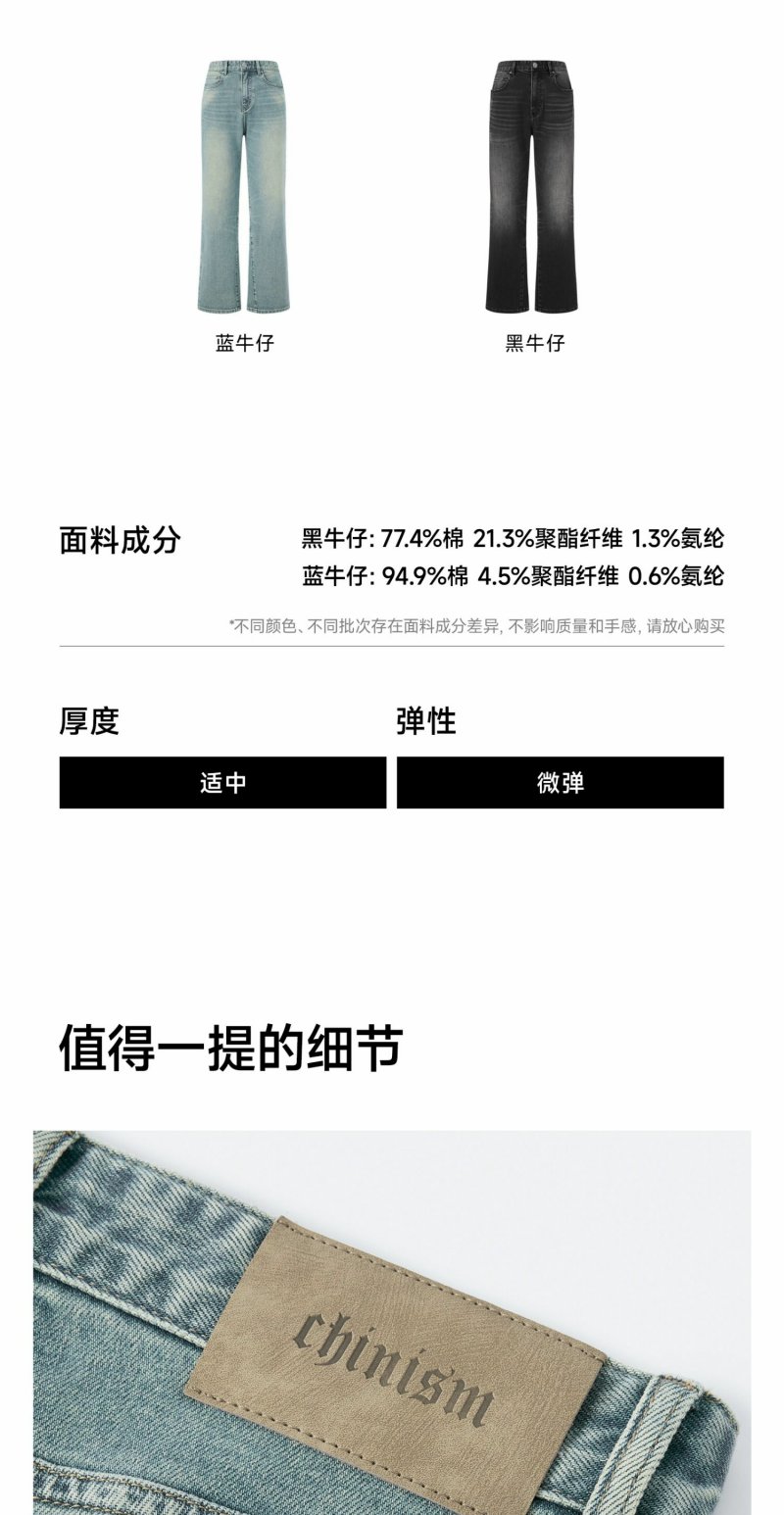 CHINISM赤尘 重磅325g弹力微喇牛仔裤男2025夏季吊磨合体男士裤子