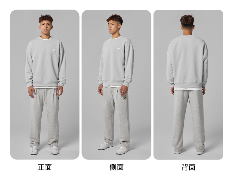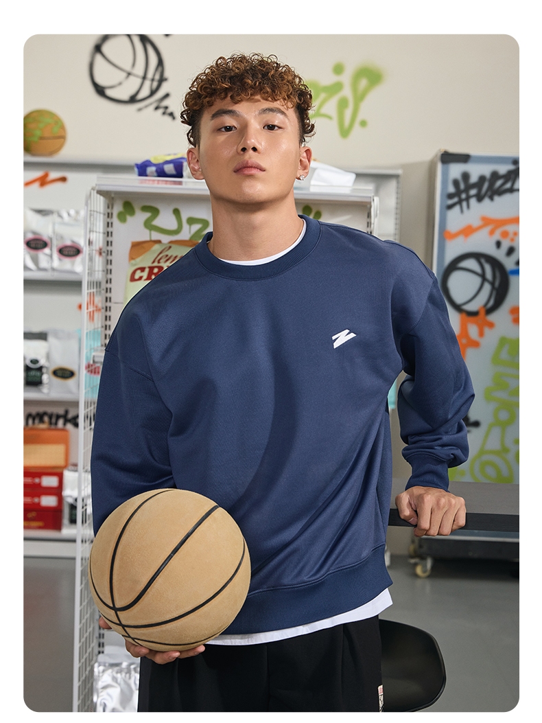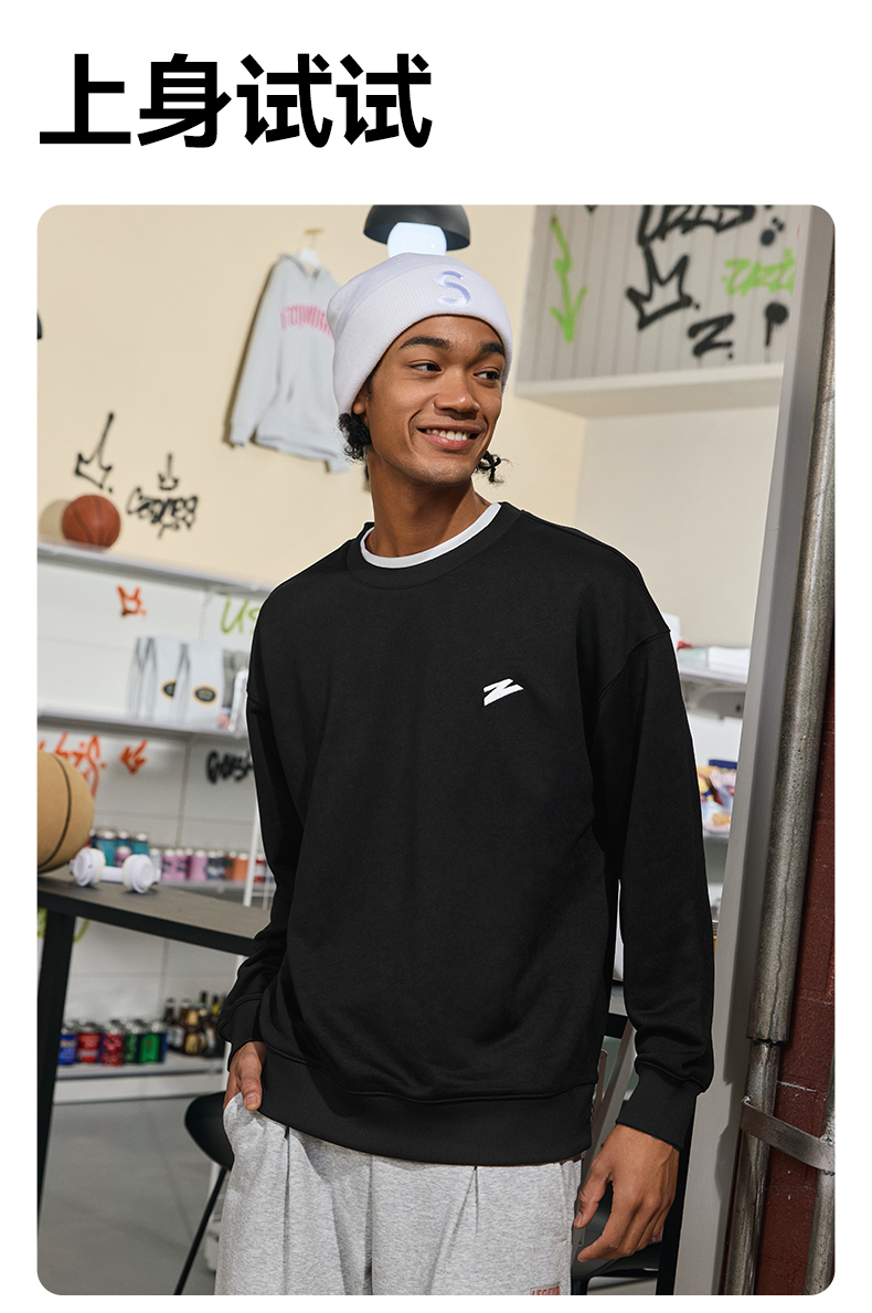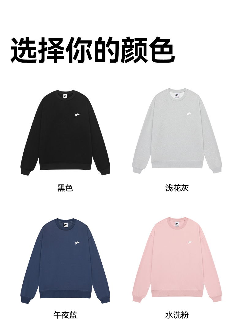 有志者UZIS美式休闲圆领卫衣男篮球运动秋季宽松纯色套头上衣极简