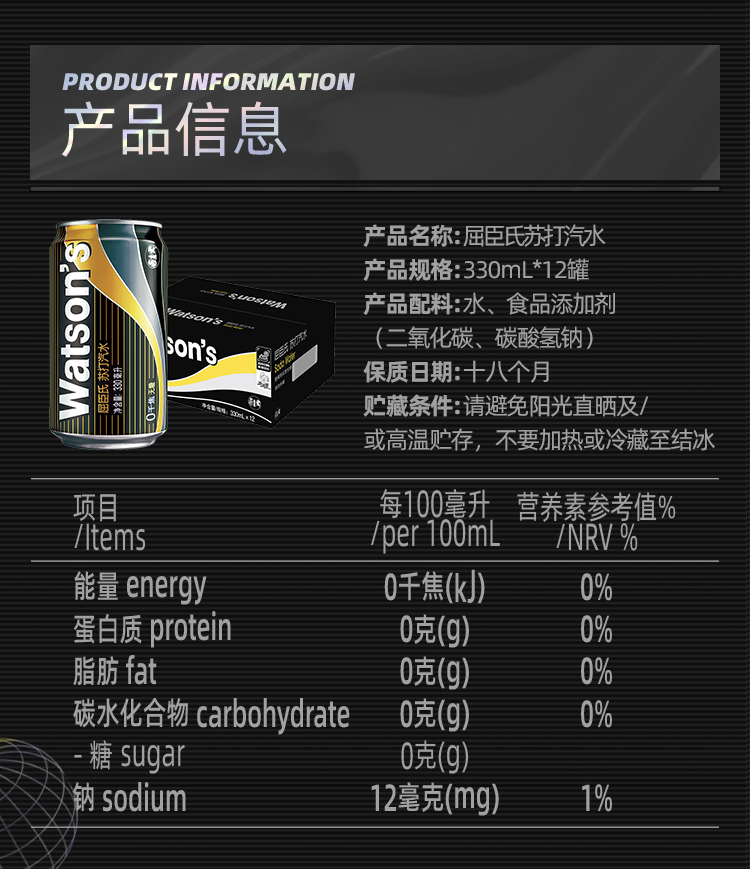 屈臣氏 苏打汽水 330ml*12