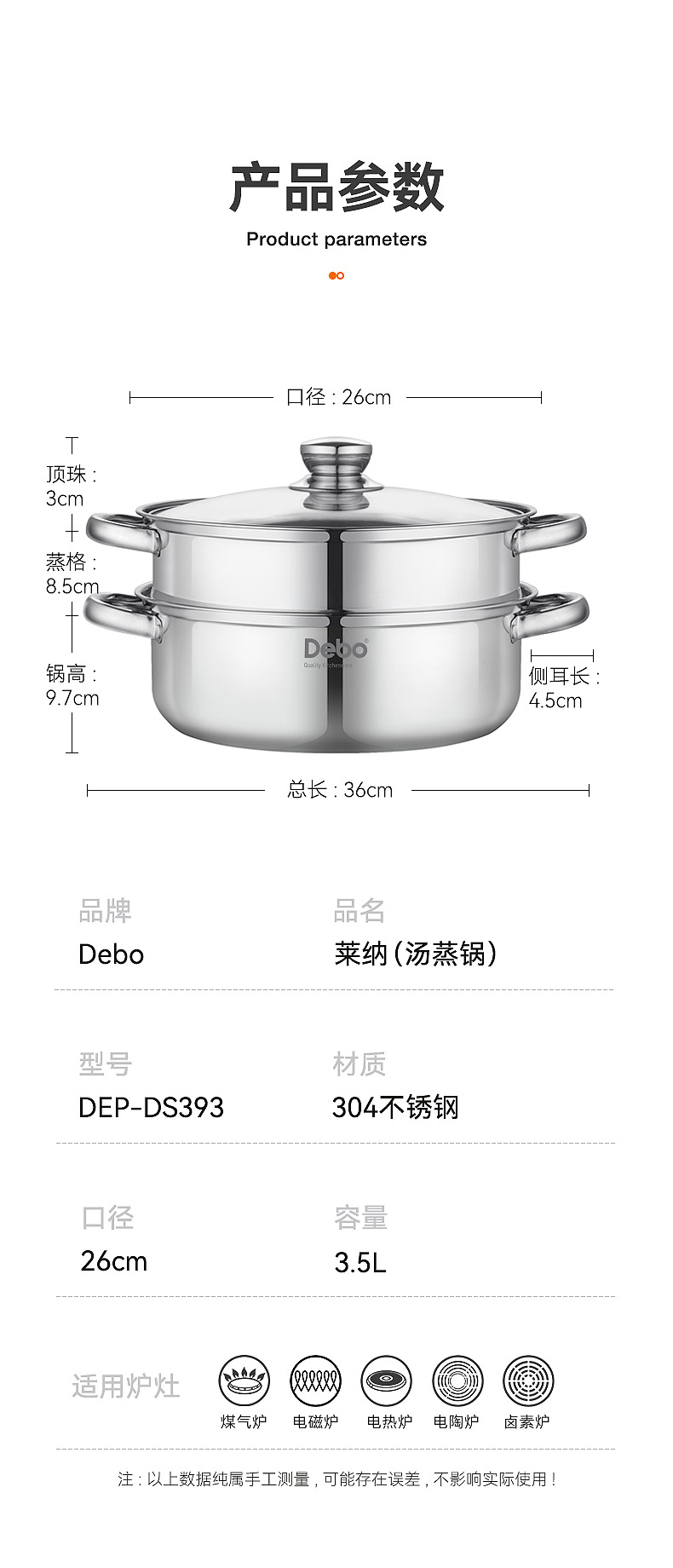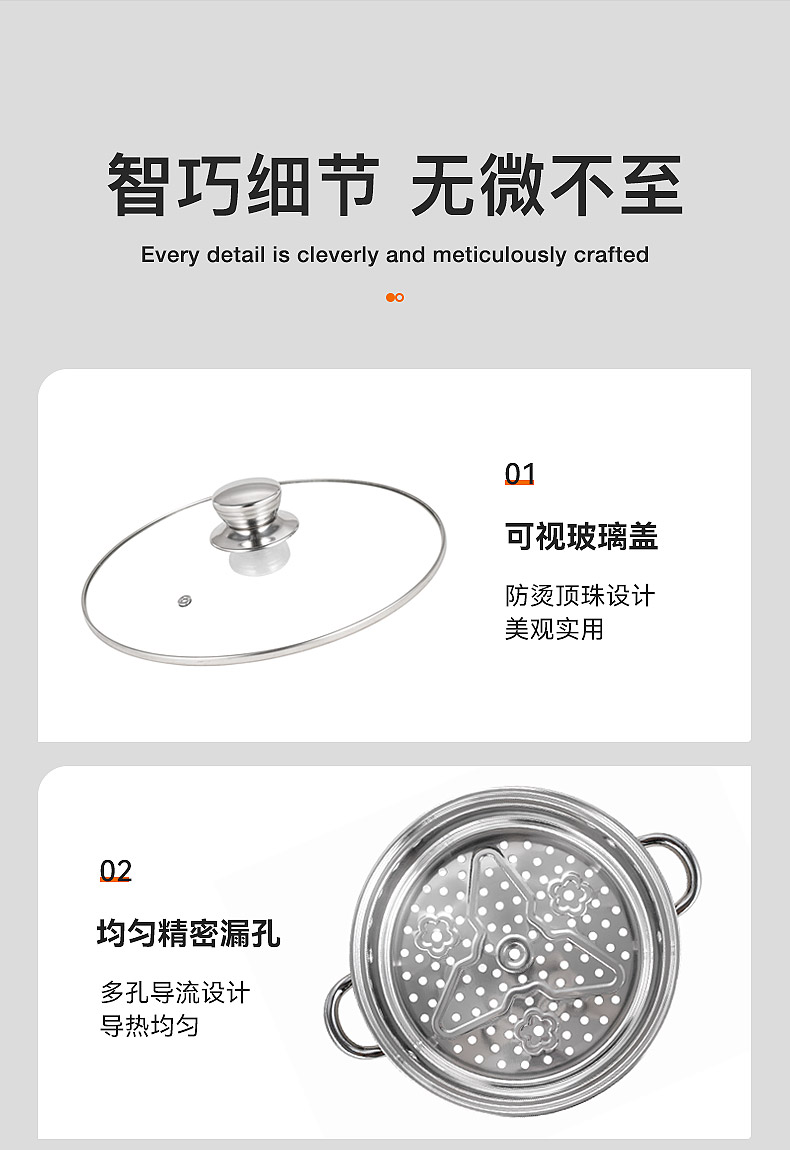 配置:锅身*1、玻璃盖*1、蒸格*1