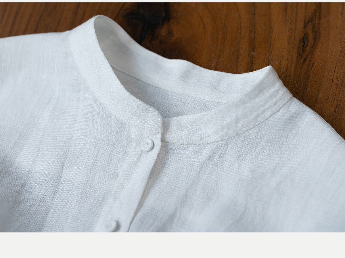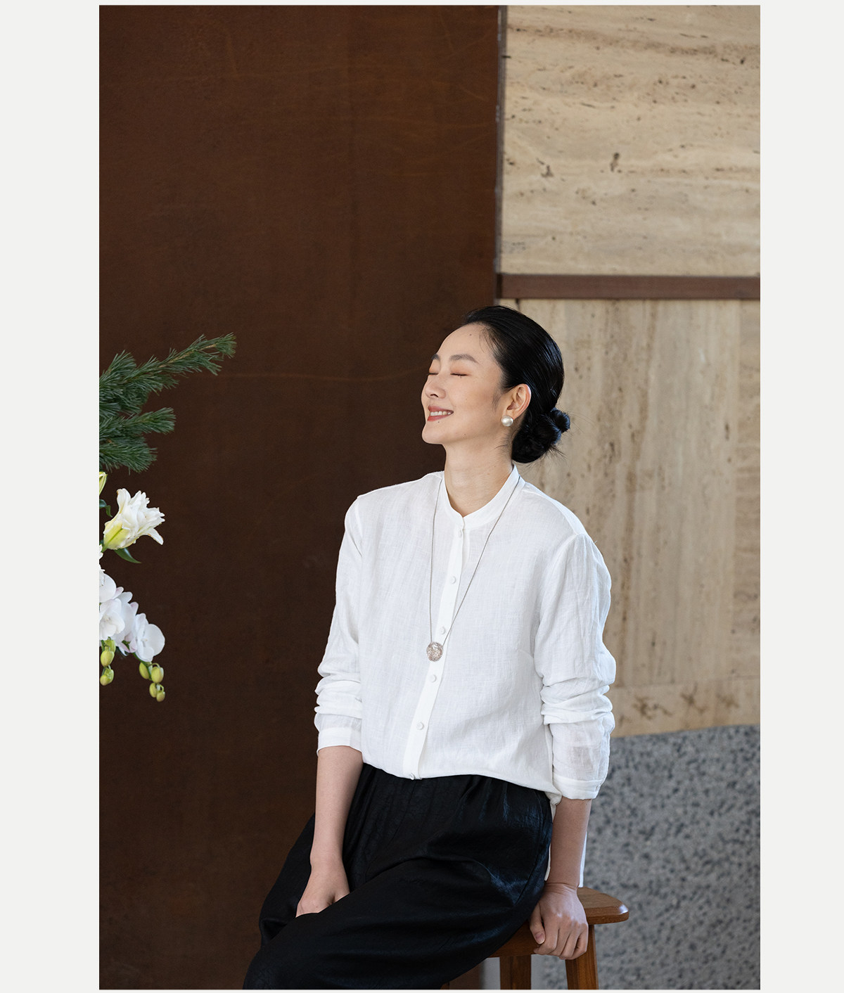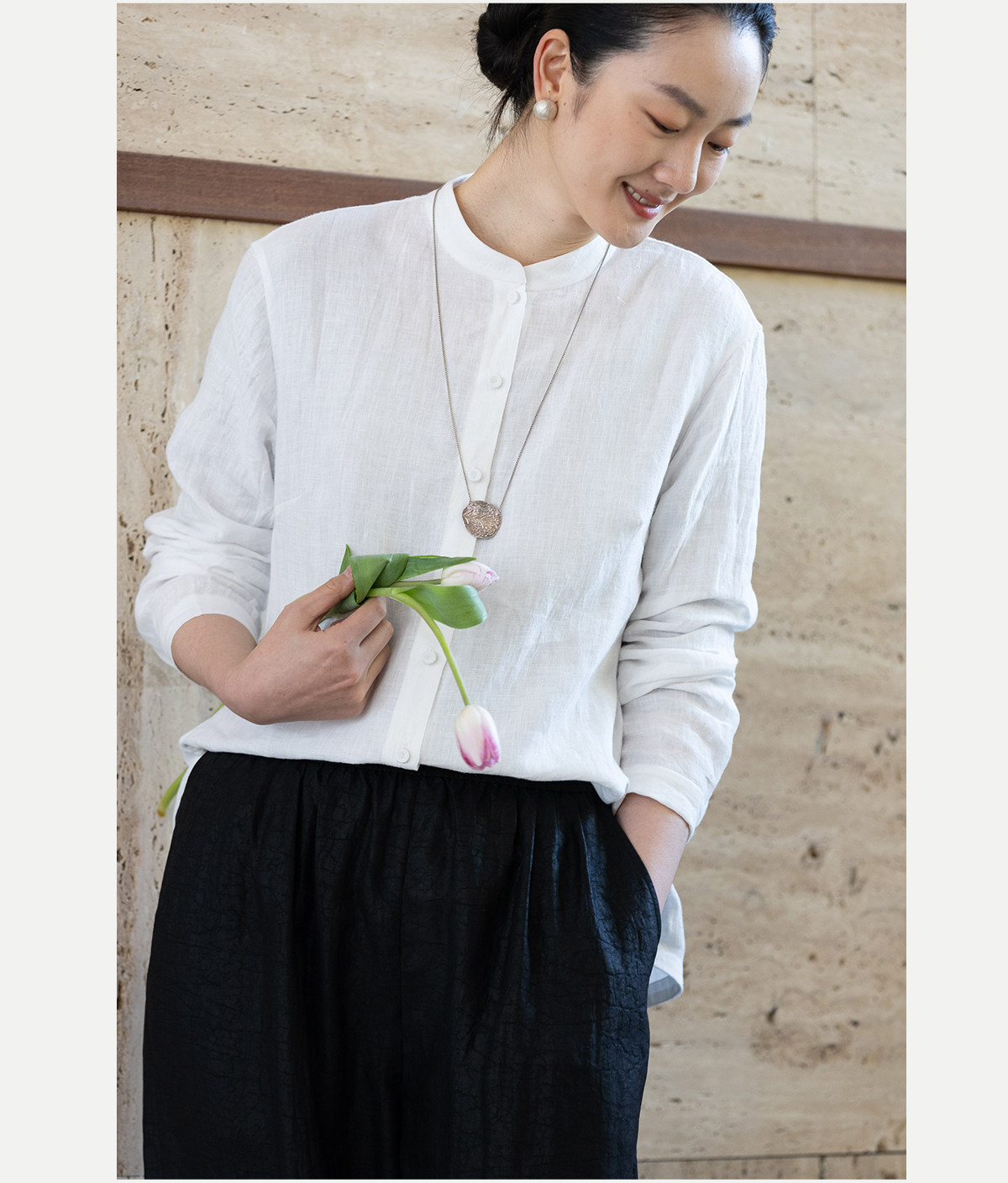 牧衣游原创 汉麻净色衬衫女新款轻薄柔软白色简约文艺衬衣 春宴
