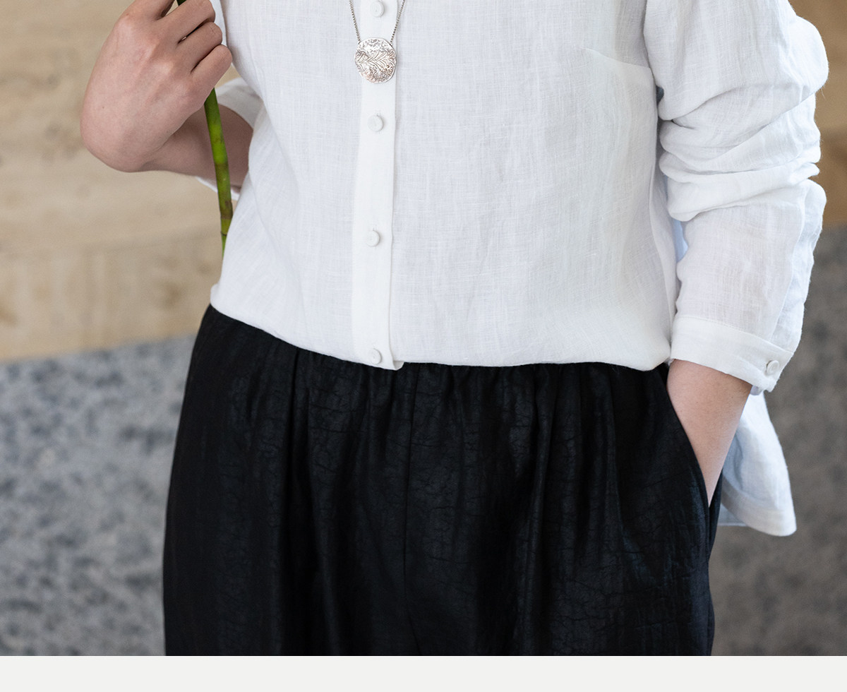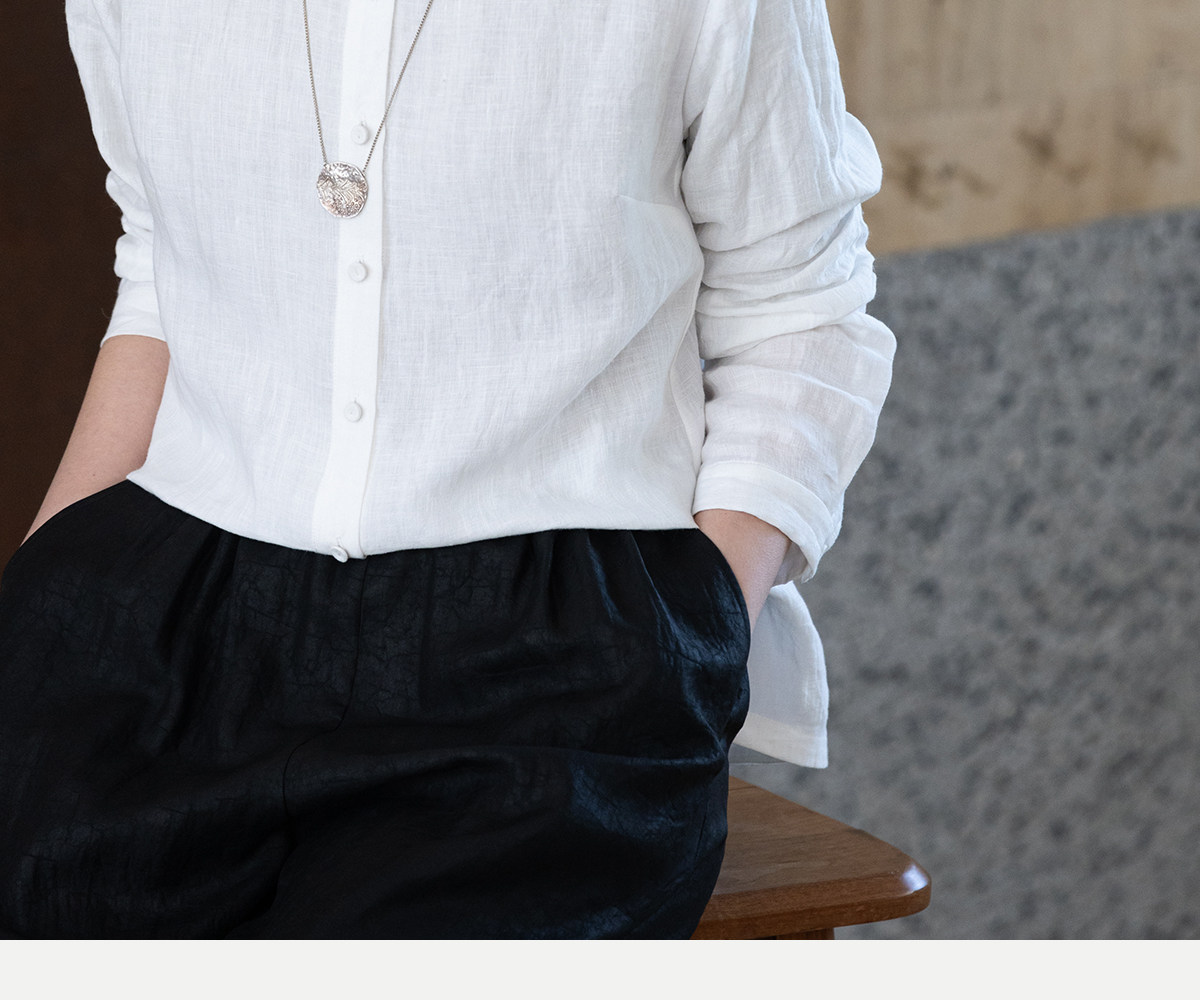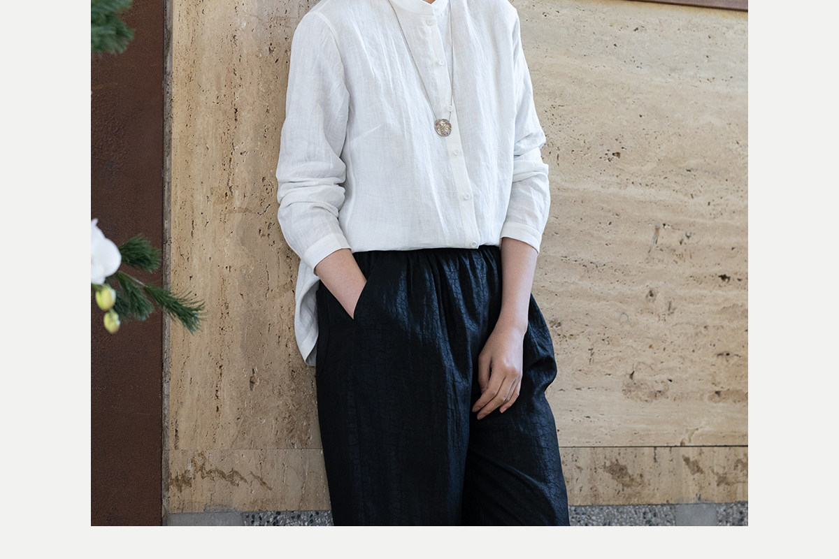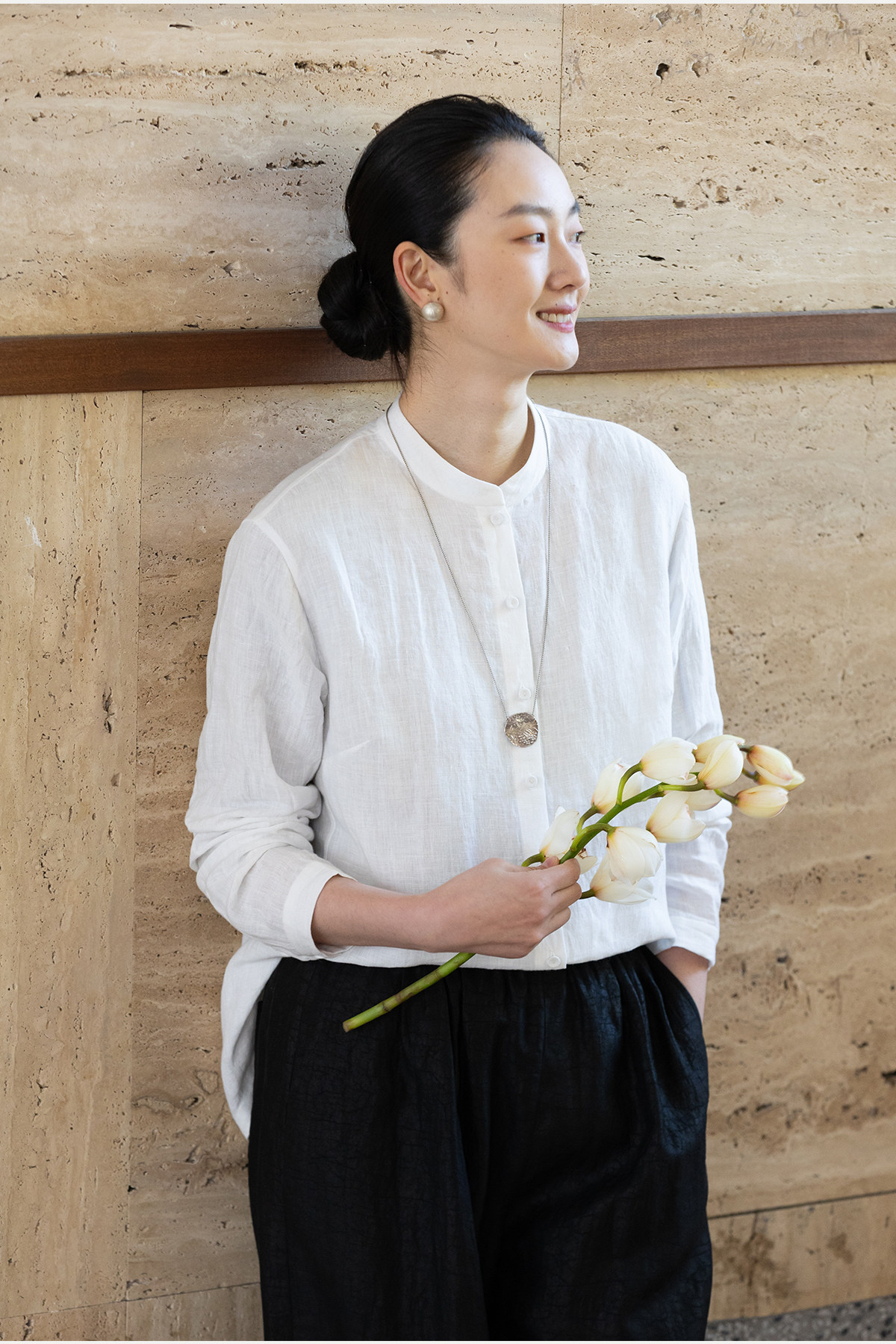 牧衣游原创 汉麻净色衬衫女新款轻薄柔软白色简约文艺衬衣 春宴