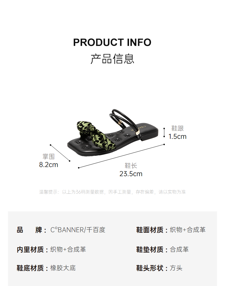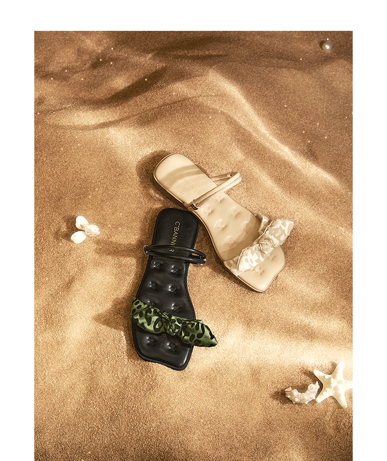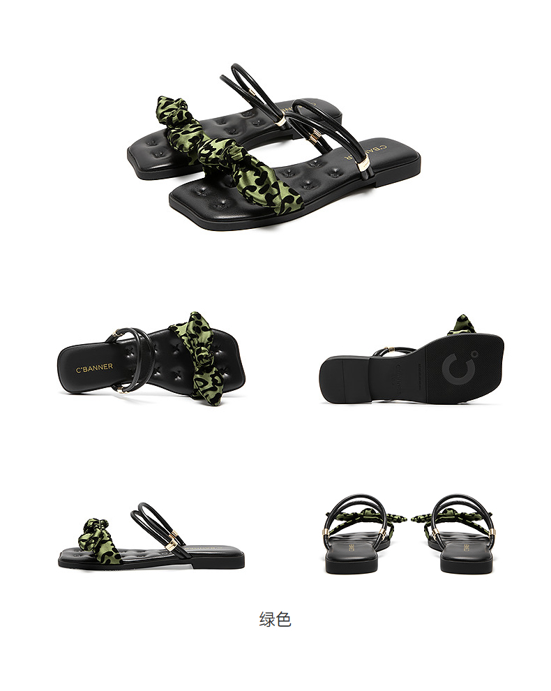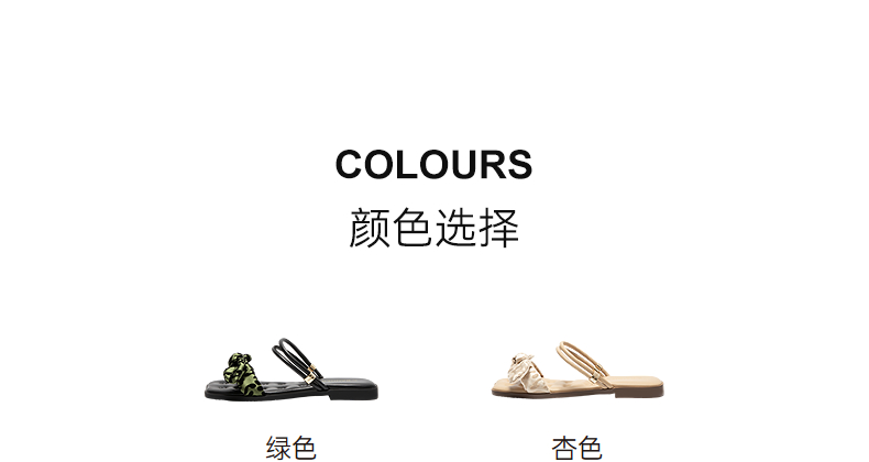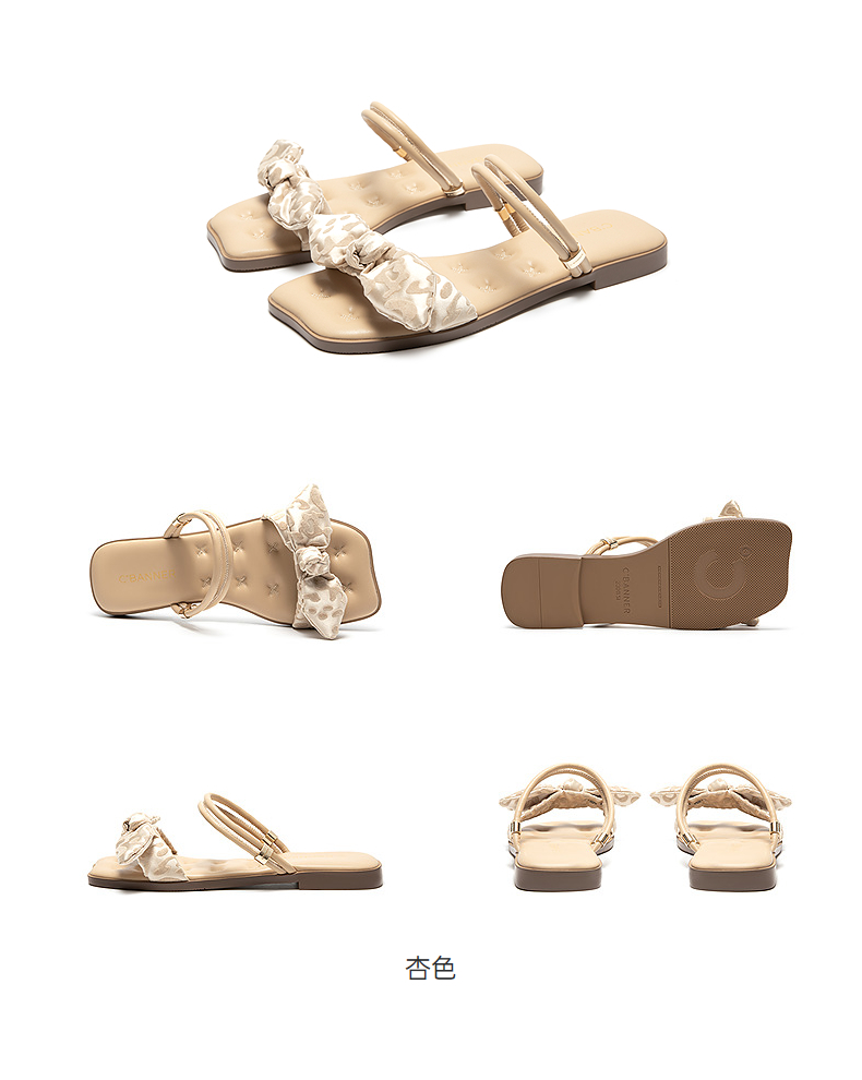 千百度蝴蝶结平底一字拖女款外穿休闲度假露趾凉拖鞋A25356867