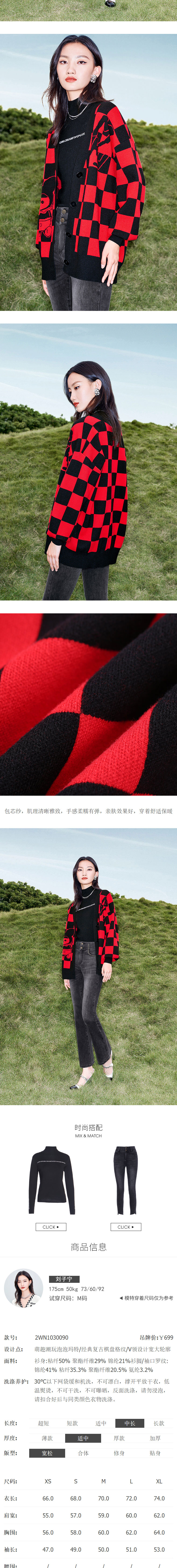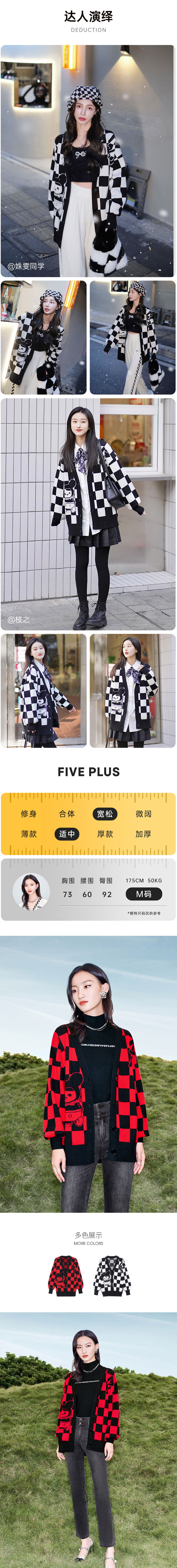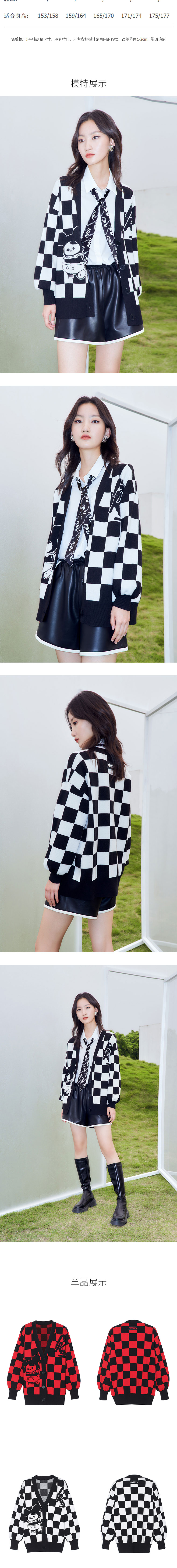 FIVE PLUS 2022新款女春装泡泡玛特联名格子毛衣开衫女卡通V领外套2WN1030090