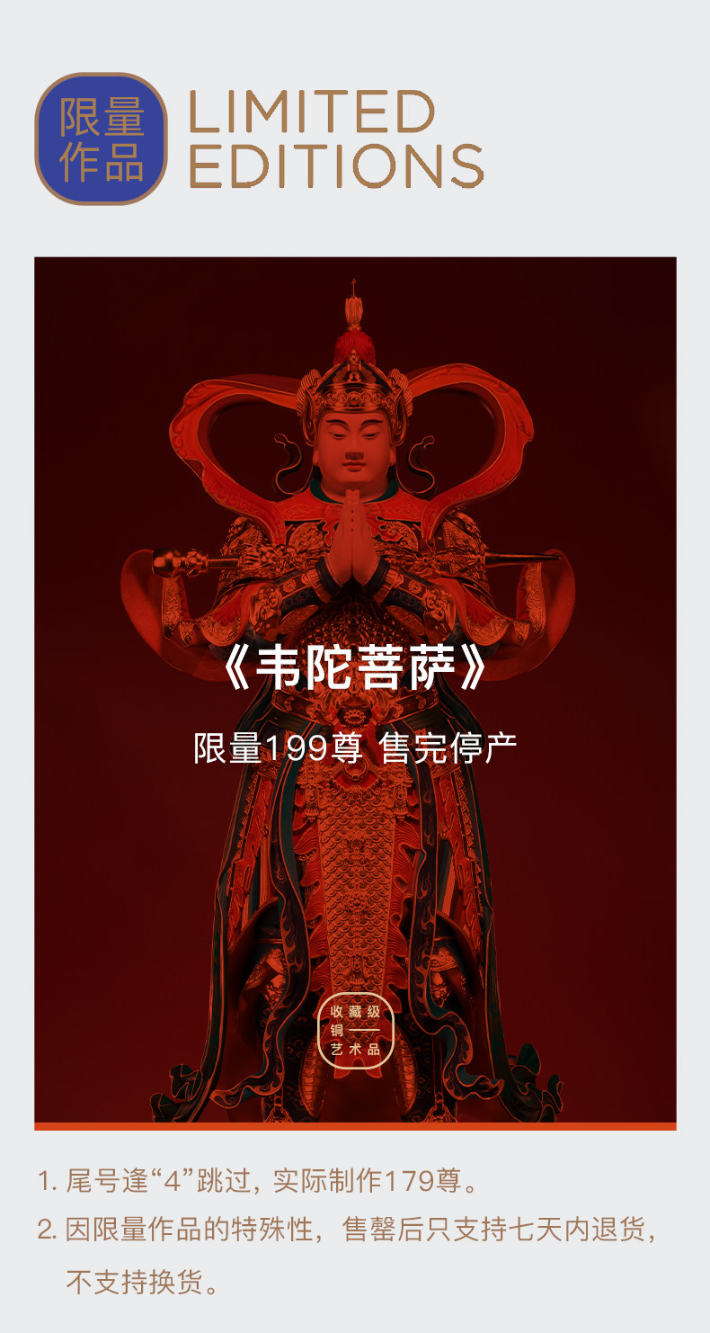 太铜《韦陀菩萨》限量版 客厅铜佛像菩萨摆件 家居工艺品
