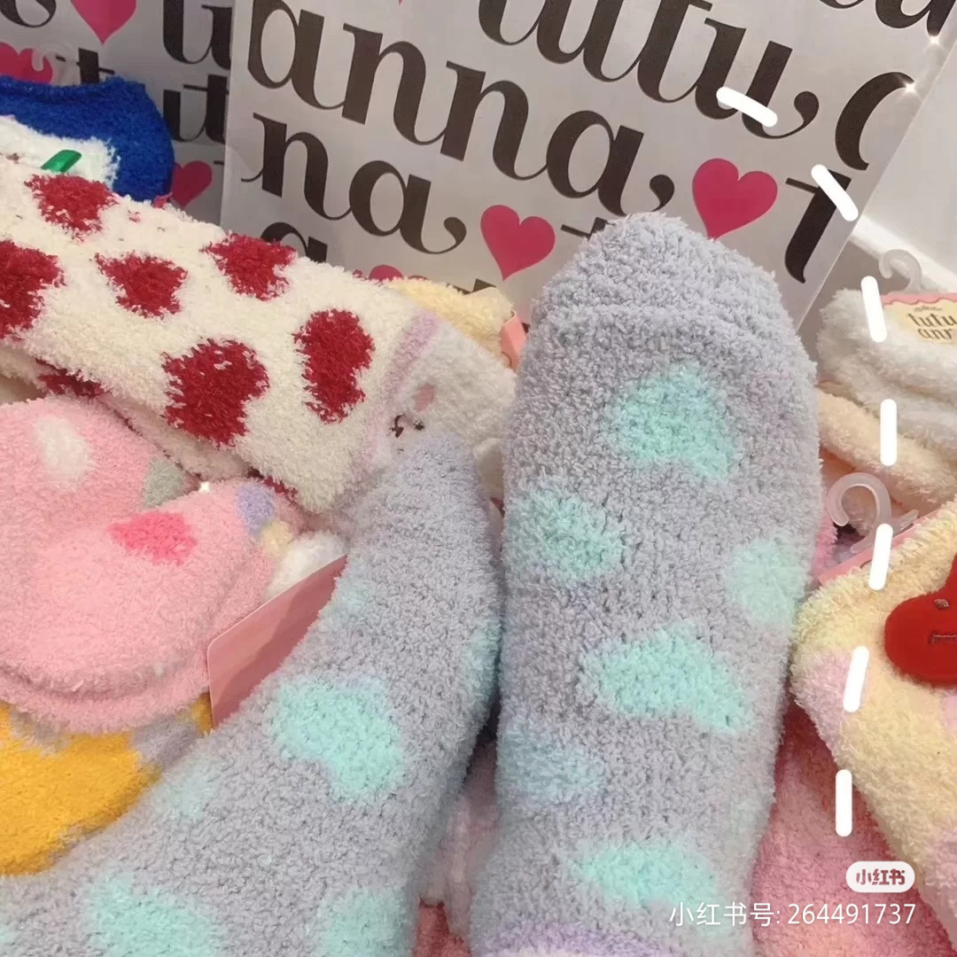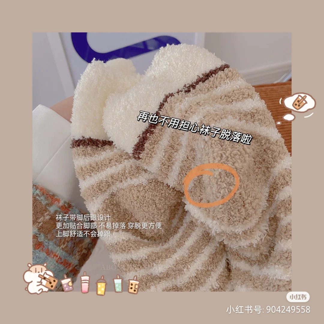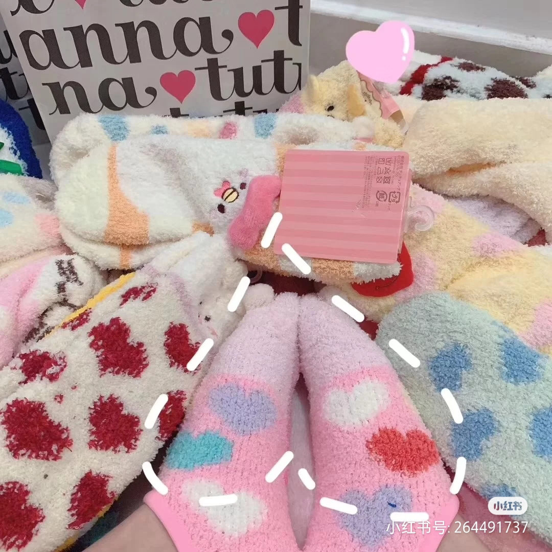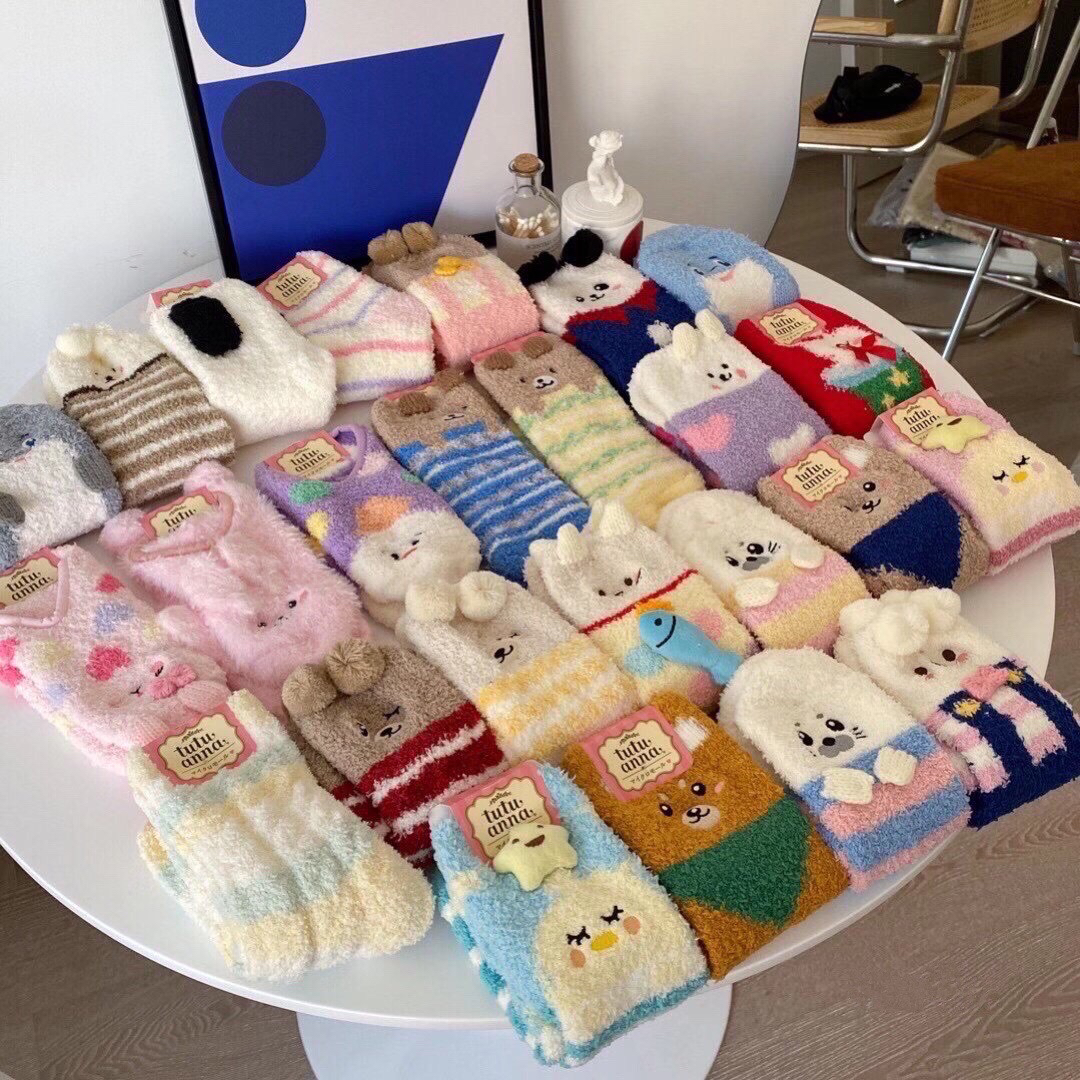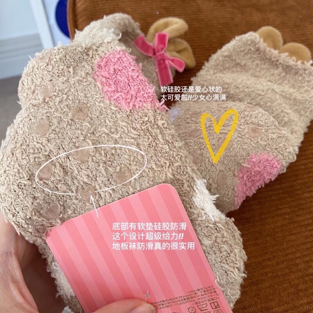 【随机发货】日系tutu地板袜珊瑚绒袜子加厚保暖中筒秋冬季加绒家居睡眠月子袜(5双)