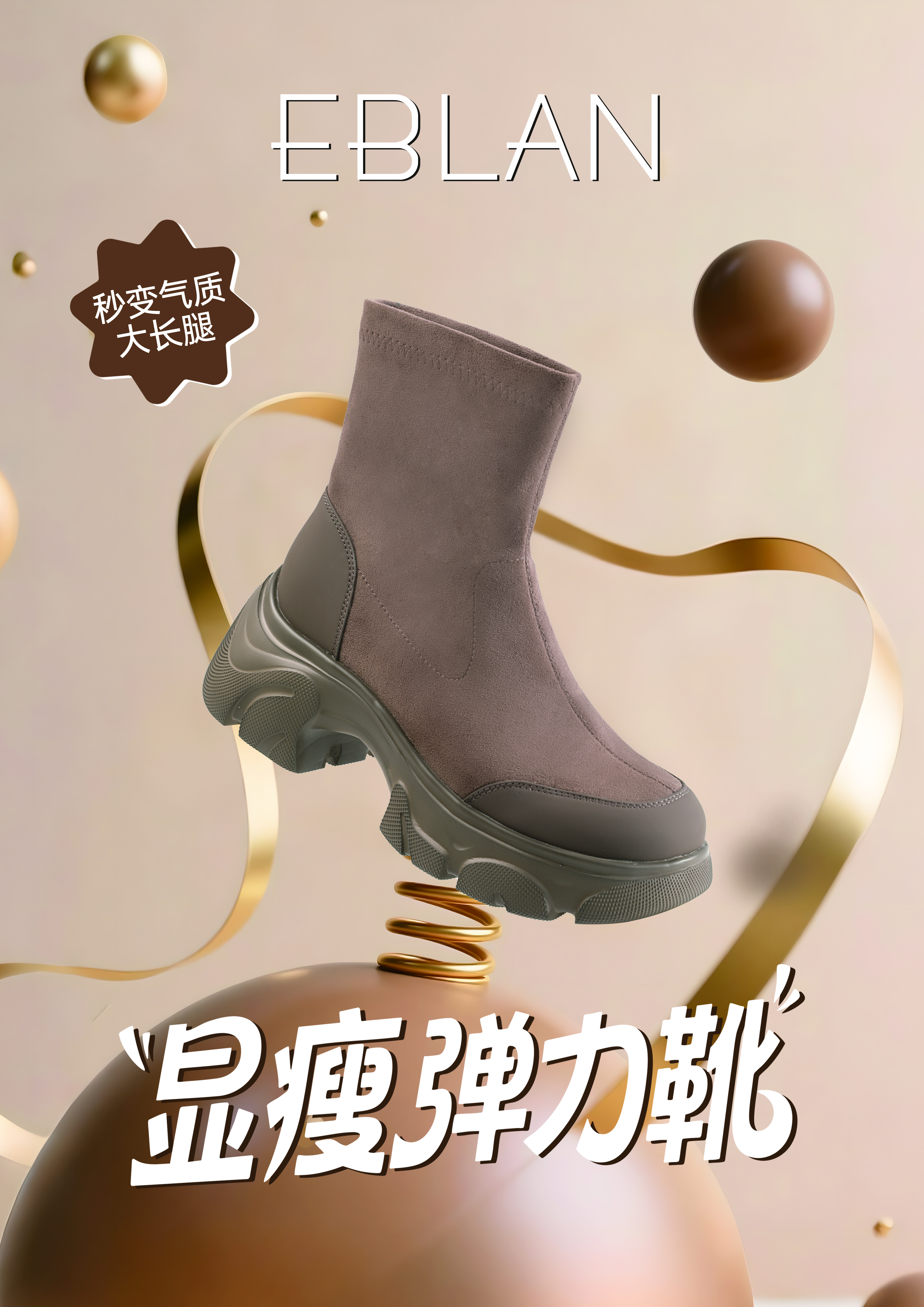 伊伴冬季双层Q弹垫脚运动感大底女时尚休闲鞋B25552725