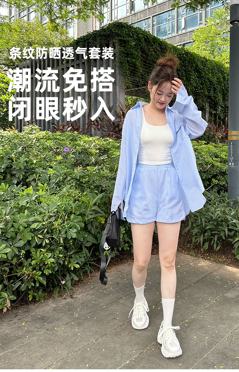 壁虎瑜伽【2507TZ388】条纹透气防晒套装【5天发货】