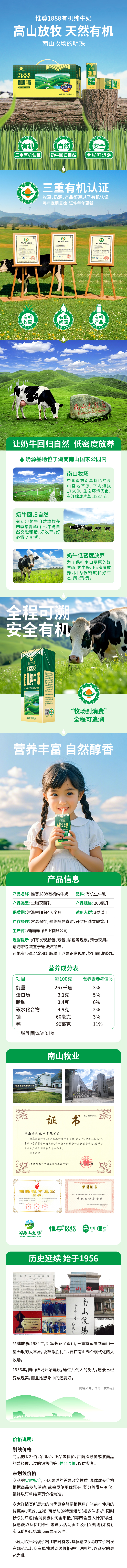 南山唯尊1888有机纯牛奶200Ml*12【XPTX】