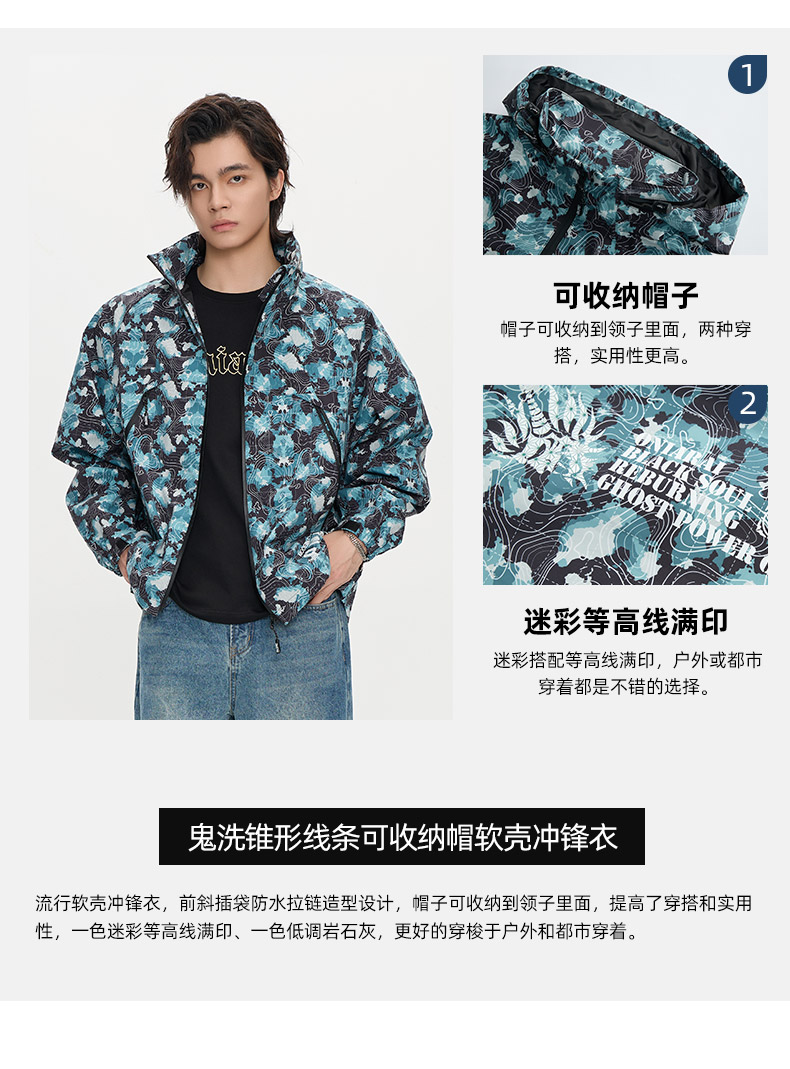 ONIARAI/鬼洗25秋冬新品锥形线条可收纳帽软壳冲锋衣男式 B340222