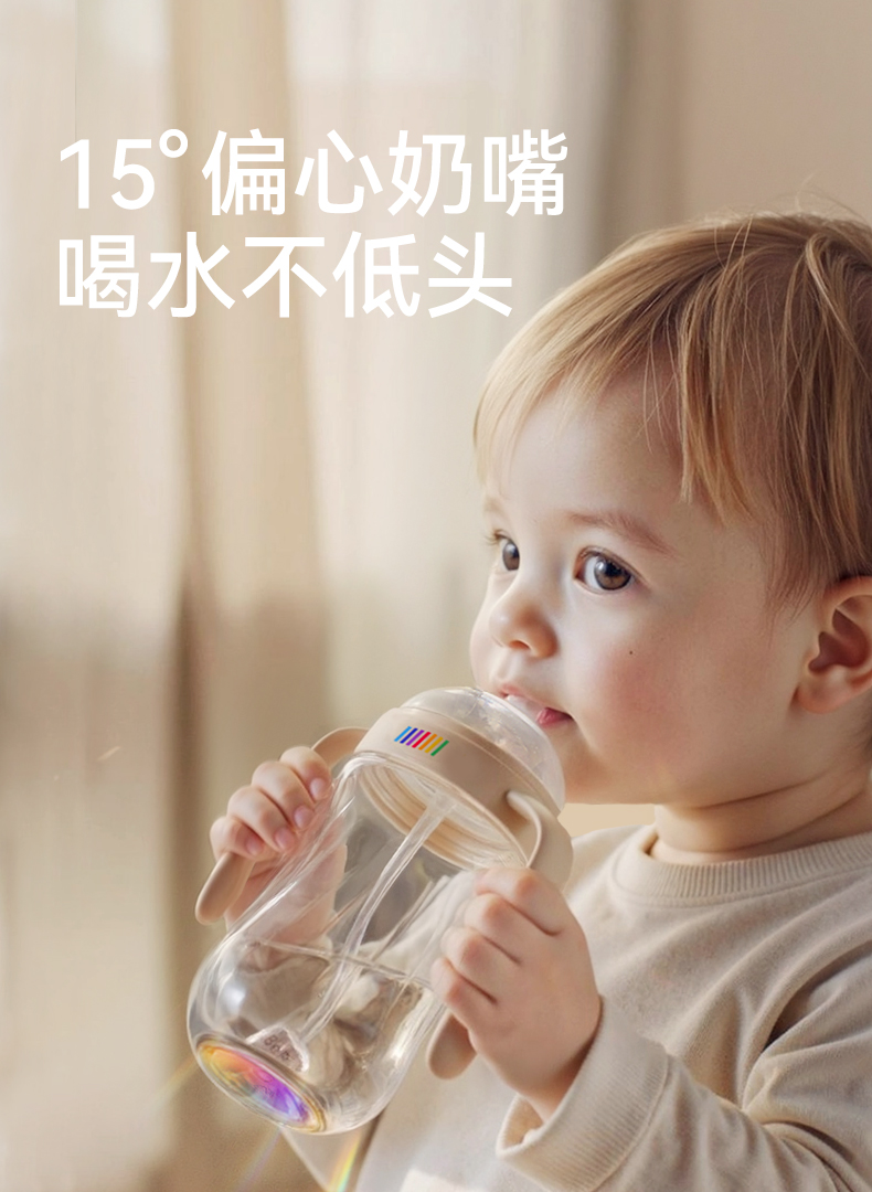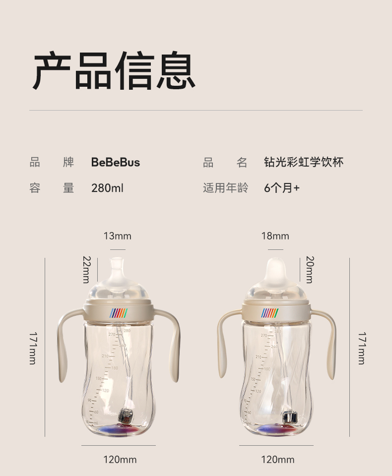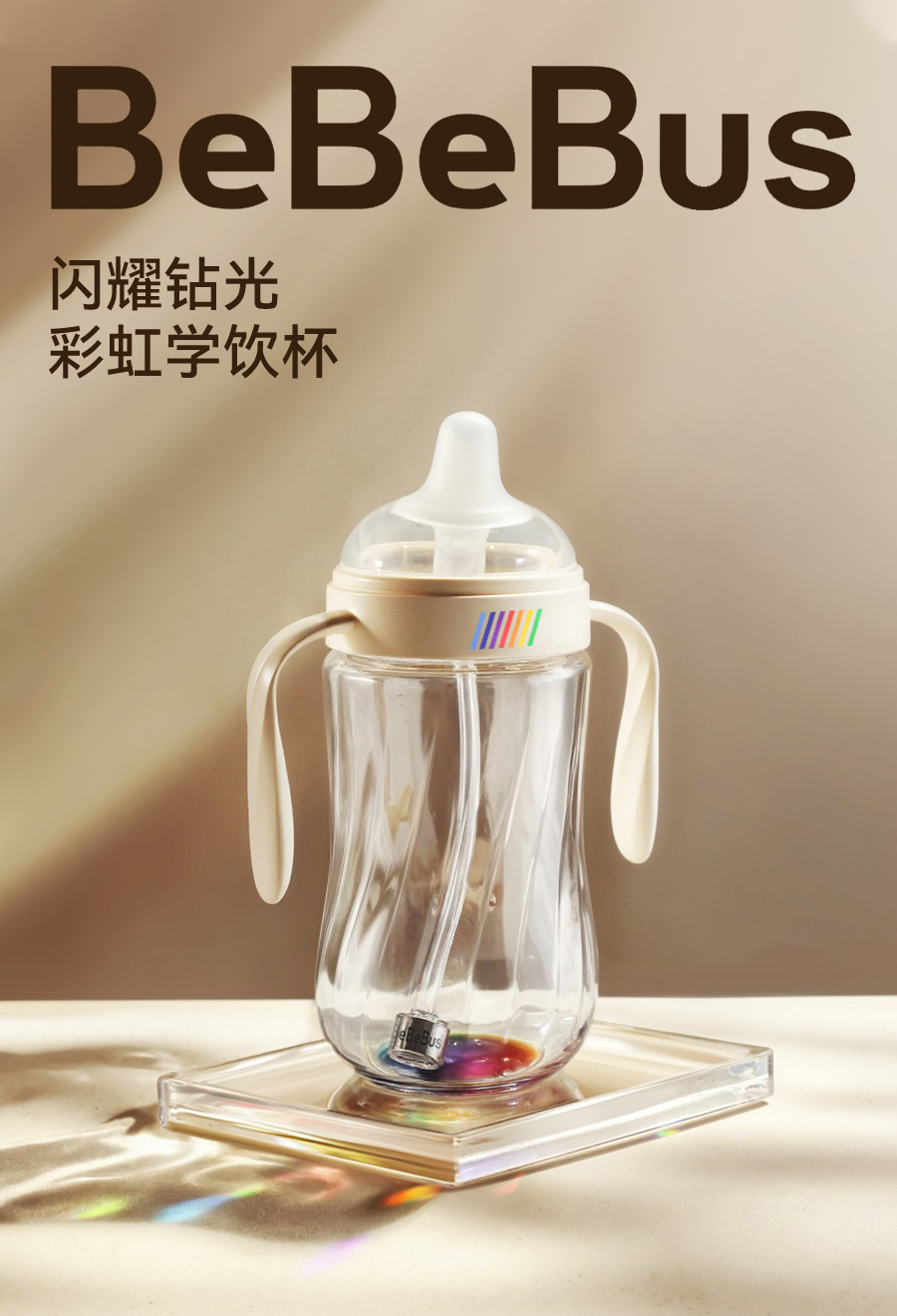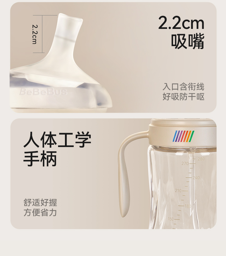 BeBeBus钻光彩虹学饮杯 婴儿鸭嘴杯吸嘴杯