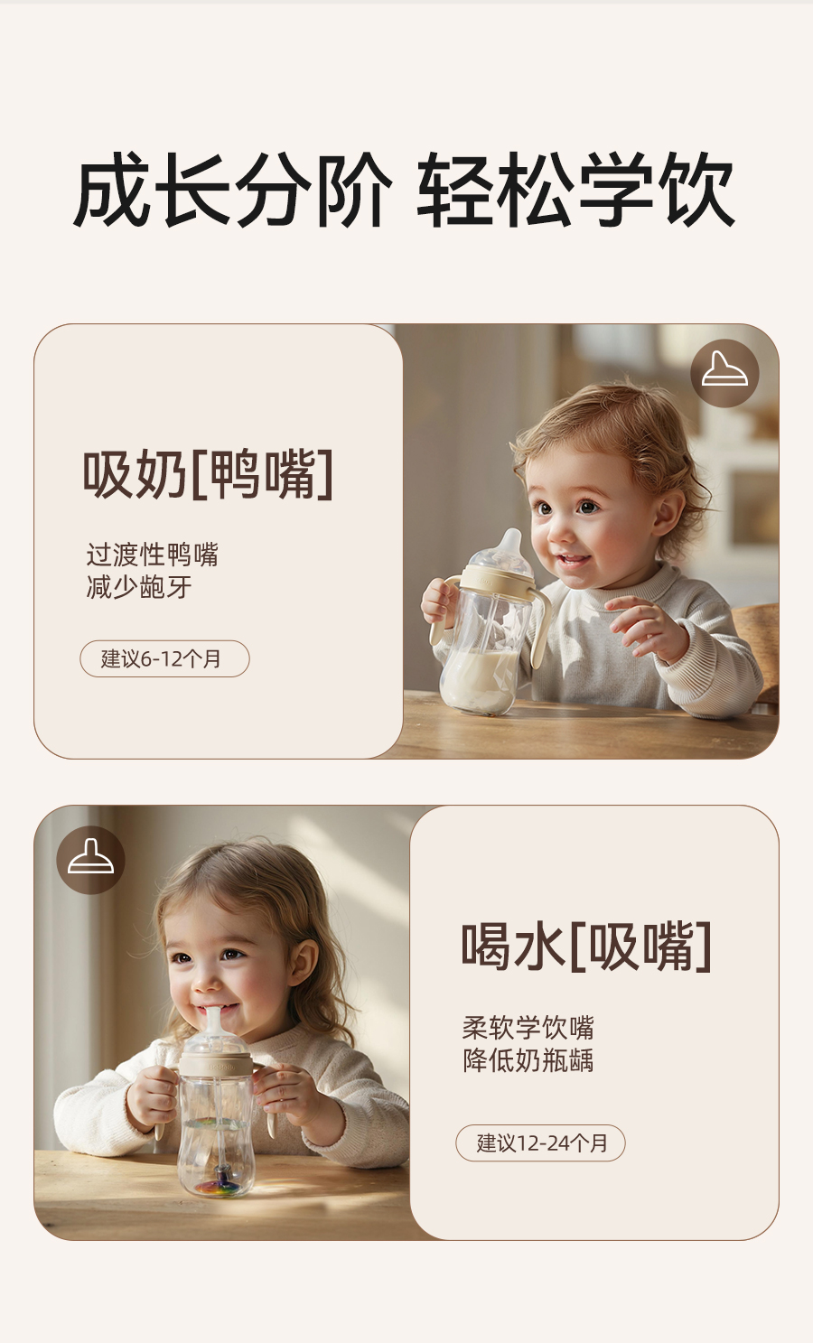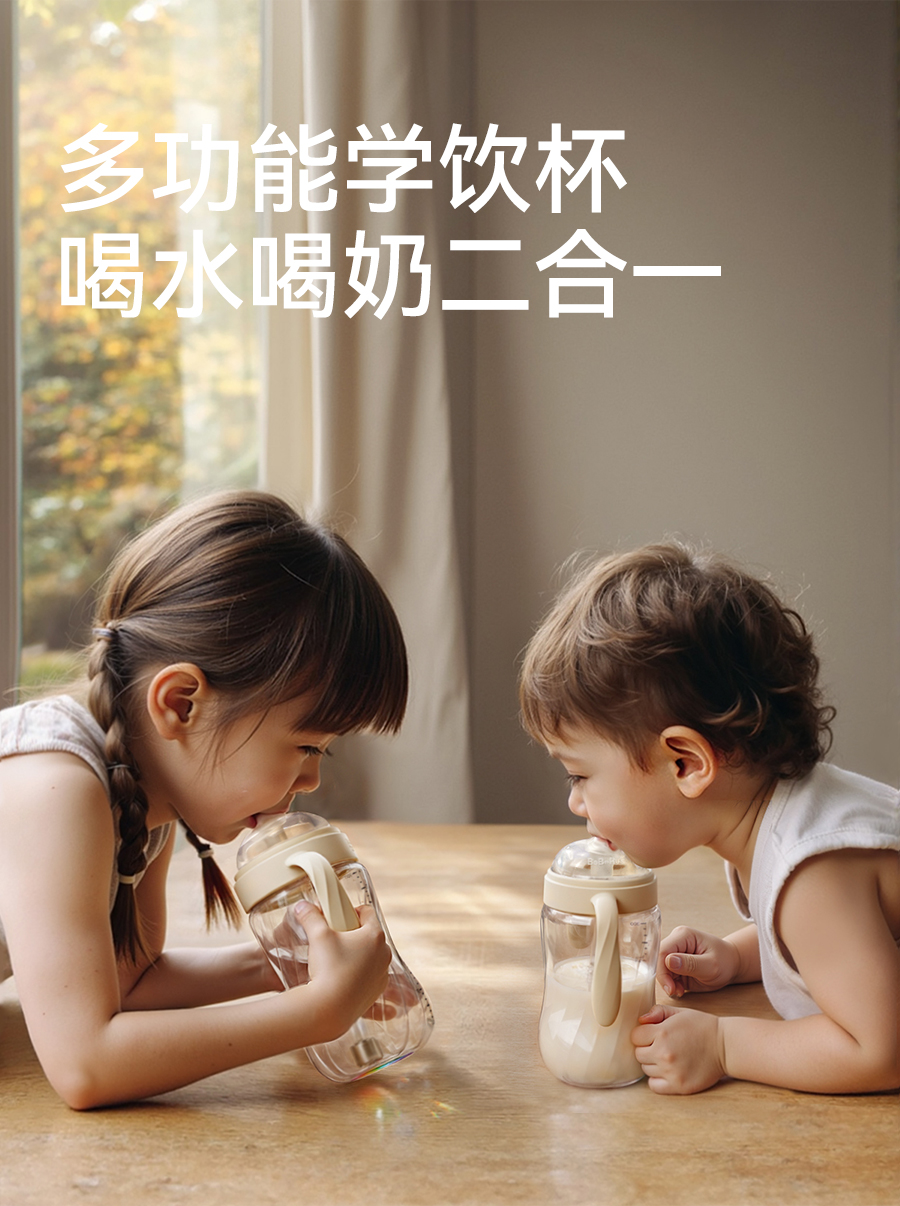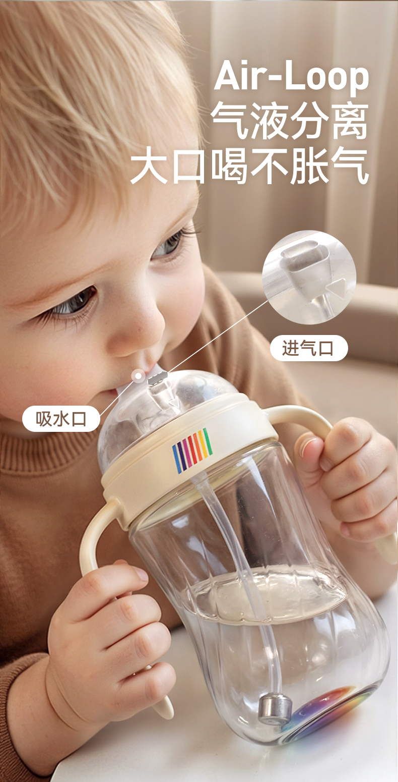 BeBeBus钻光彩虹学饮杯 婴儿鸭嘴杯吸嘴杯