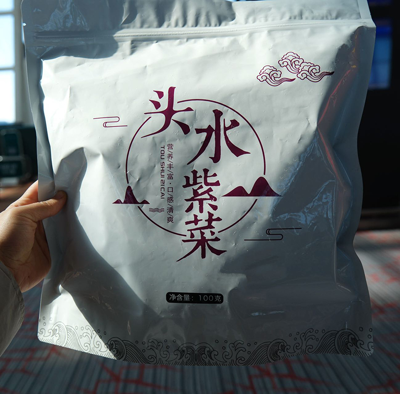 烘干好的紫菜装入不透光的铝袋给大家打包发货。