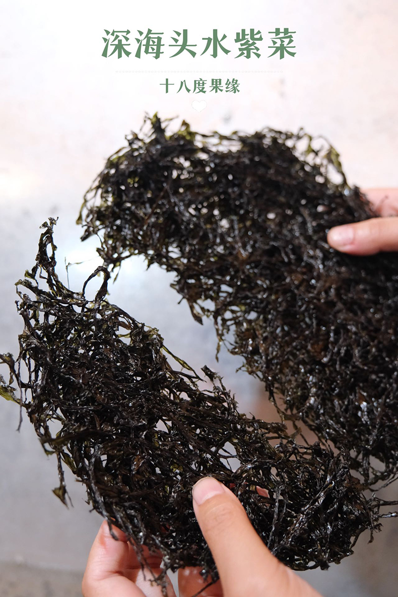 深海水质好,紫菜生长环境极其优越,这里紫菜的密度低,所含蛋白质、钙、碘、磷、锌等营养物质更高。深海风浪大,紫菜没有泥沙,加工后免洗就能食用。