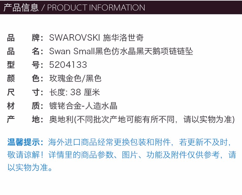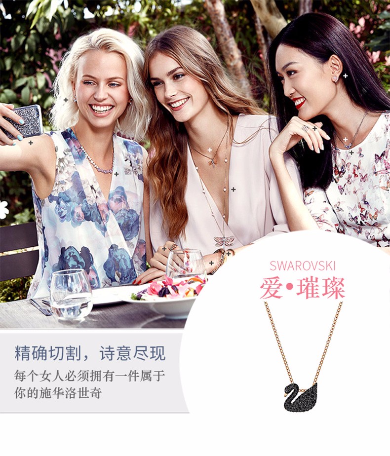 SWAROVSKI施华洛世奇 SWAN SMALL仿水晶黑天鹅项链链坠小号 黑色 5204133 奥地利