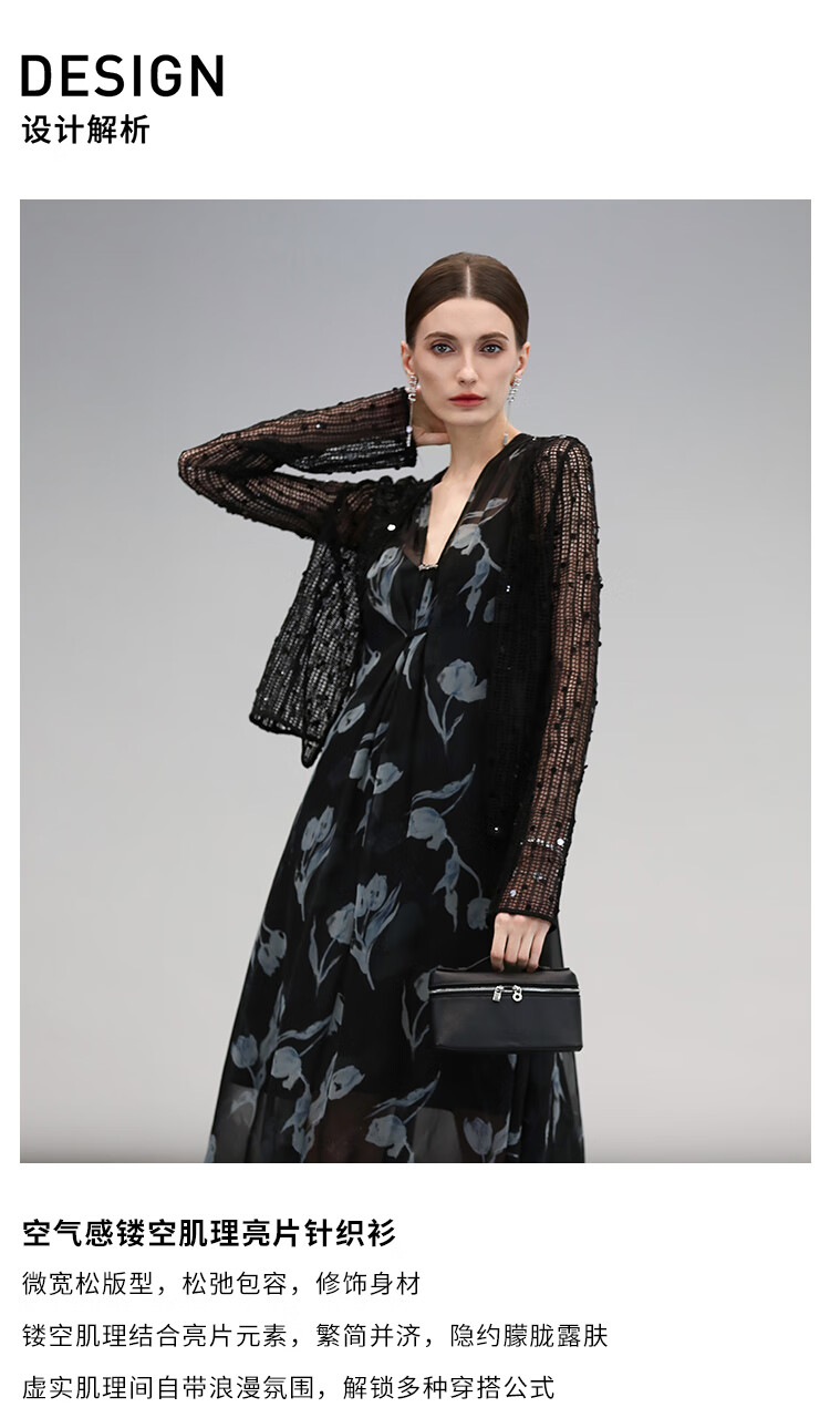 COCOBELLA重工亮片长袖针织衫小开衫气质通勤空调衫MZ3181-2