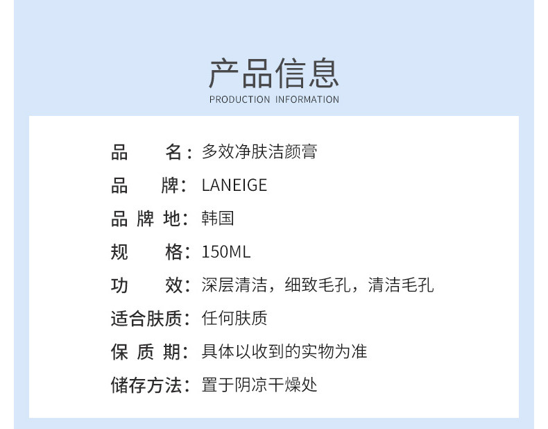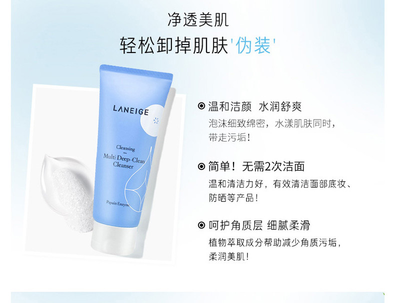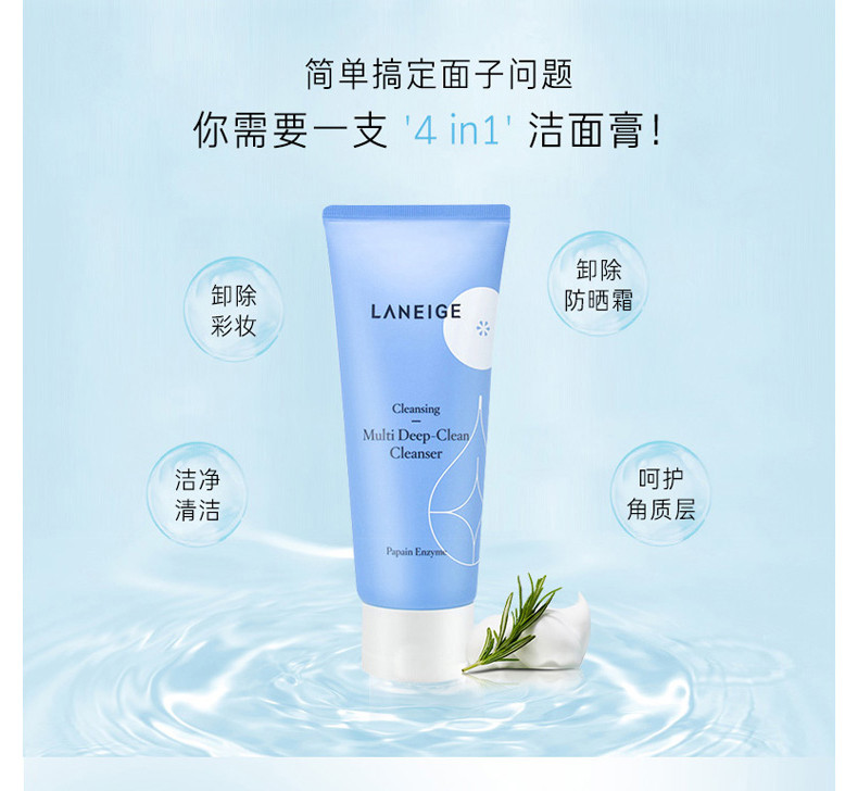韩国 LANEIGE兰芝 多效四合一洗面奶洁颜膏蓝色 150ml 版本随机