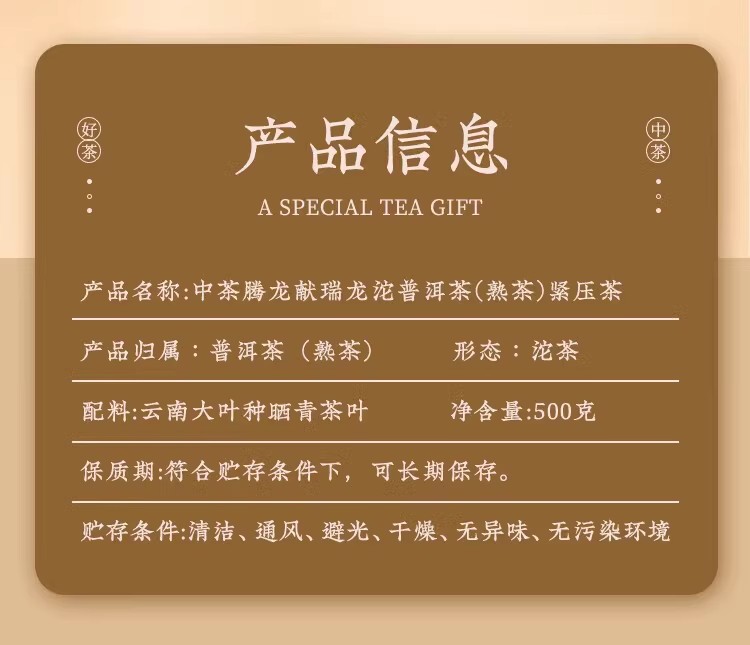 中粮-中茶 云南官方龙沱普洱熟茶500g腾龙献瑞 /云南干仓直发